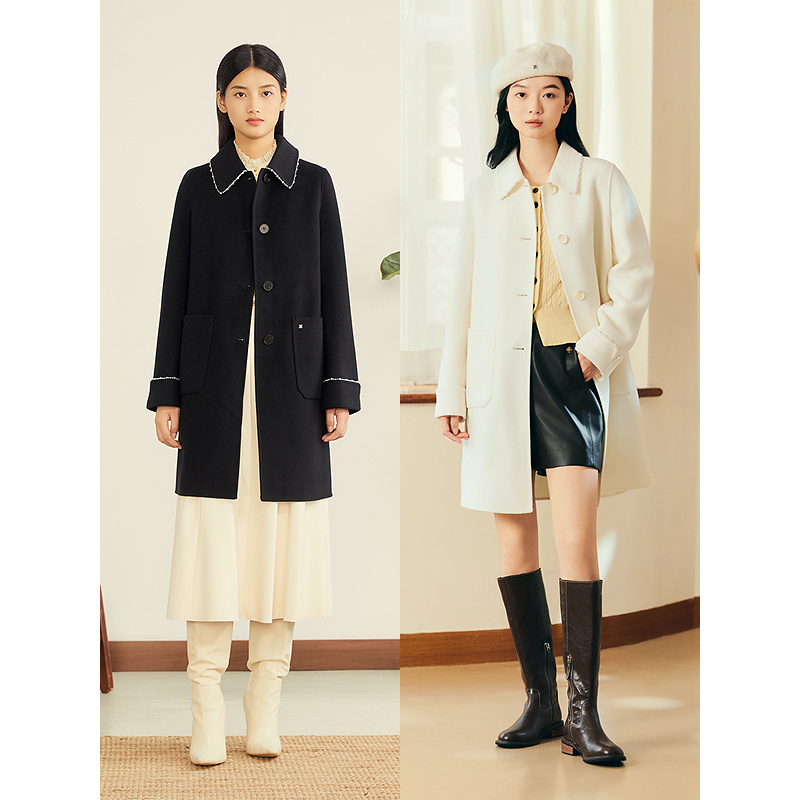 Moda毛呢大衣25秋冬新款 Vero 含羊毛羊绒双面呢收腰外套 赫本