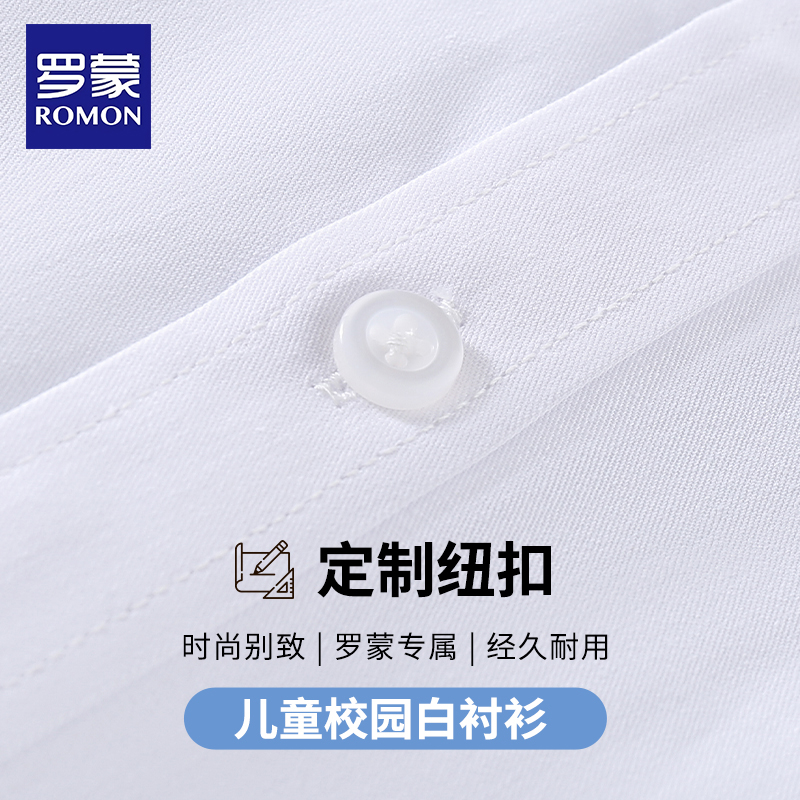 罗蒙儿童白衬衫 纯春秋小学生校服中大女童白色棉衬衣演出 男童长袖