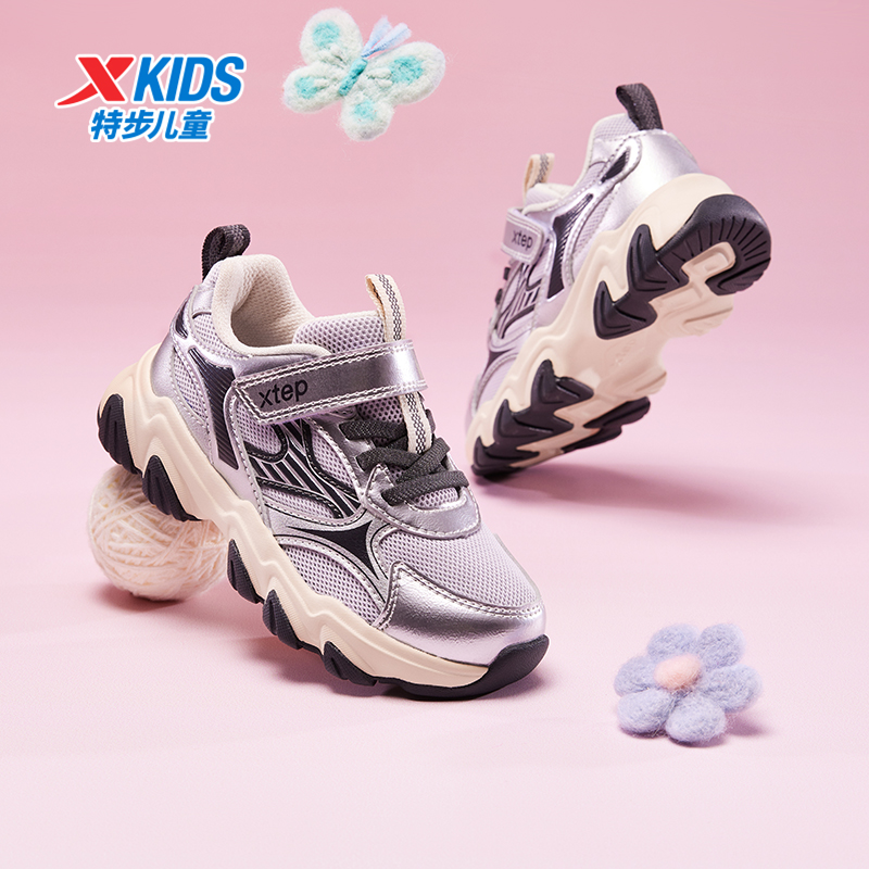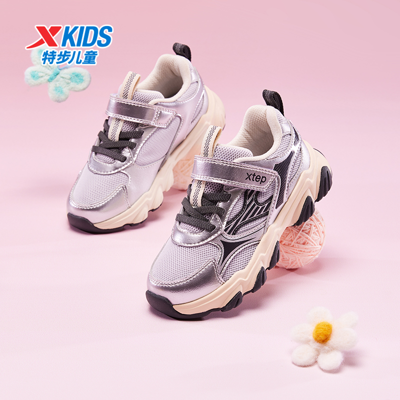 魔术贴休闲鞋 特步童鞋 幼小童女童防滑轻便时尚 儿童运动鞋 秋冬新款