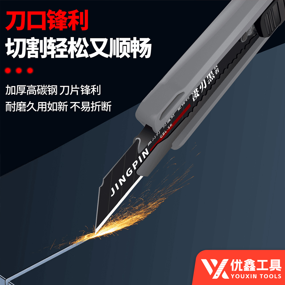 重型美工刀大号加厚壁纸刀电工专用快递开箱裁纸切割刀介刀五刀片锋利耐用高颜值黑刃神器18mm切割刀介刀替换