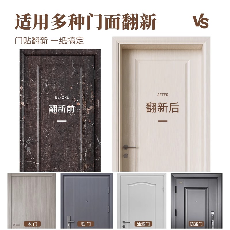 门贴旧木门翻新装 饰贴纸防水防潮入户门遮丑改造自粘壁纸木纹贴膜