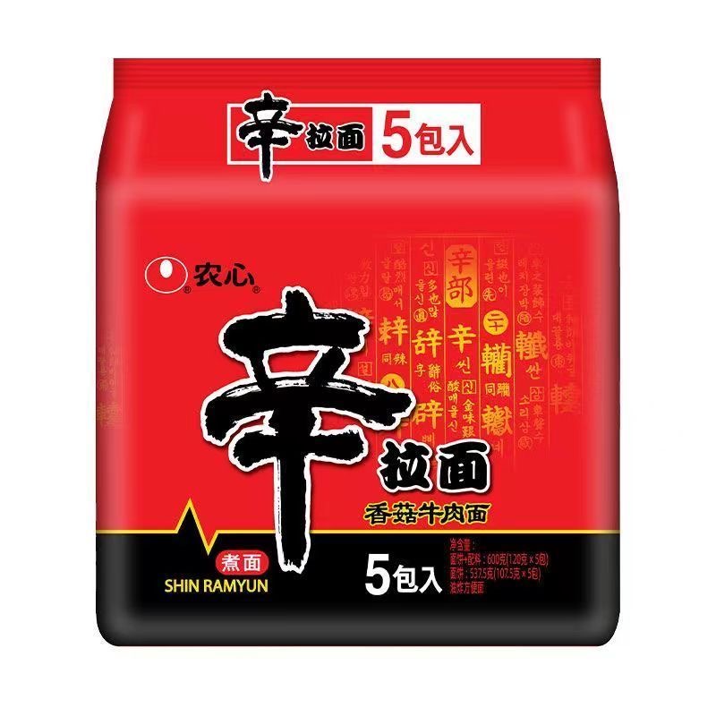 农心辛拉面辣白菜韩国袋装 5包整箱拉面泡面方便面香菇牛肉韩式