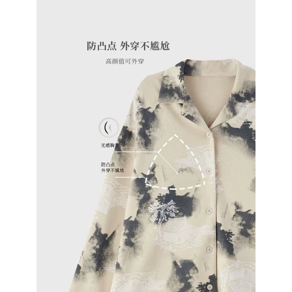 套装 家乐芬睡衣女士春秋款 家居服大码 莫代尔棉长袖 复古水墨画 秋季
