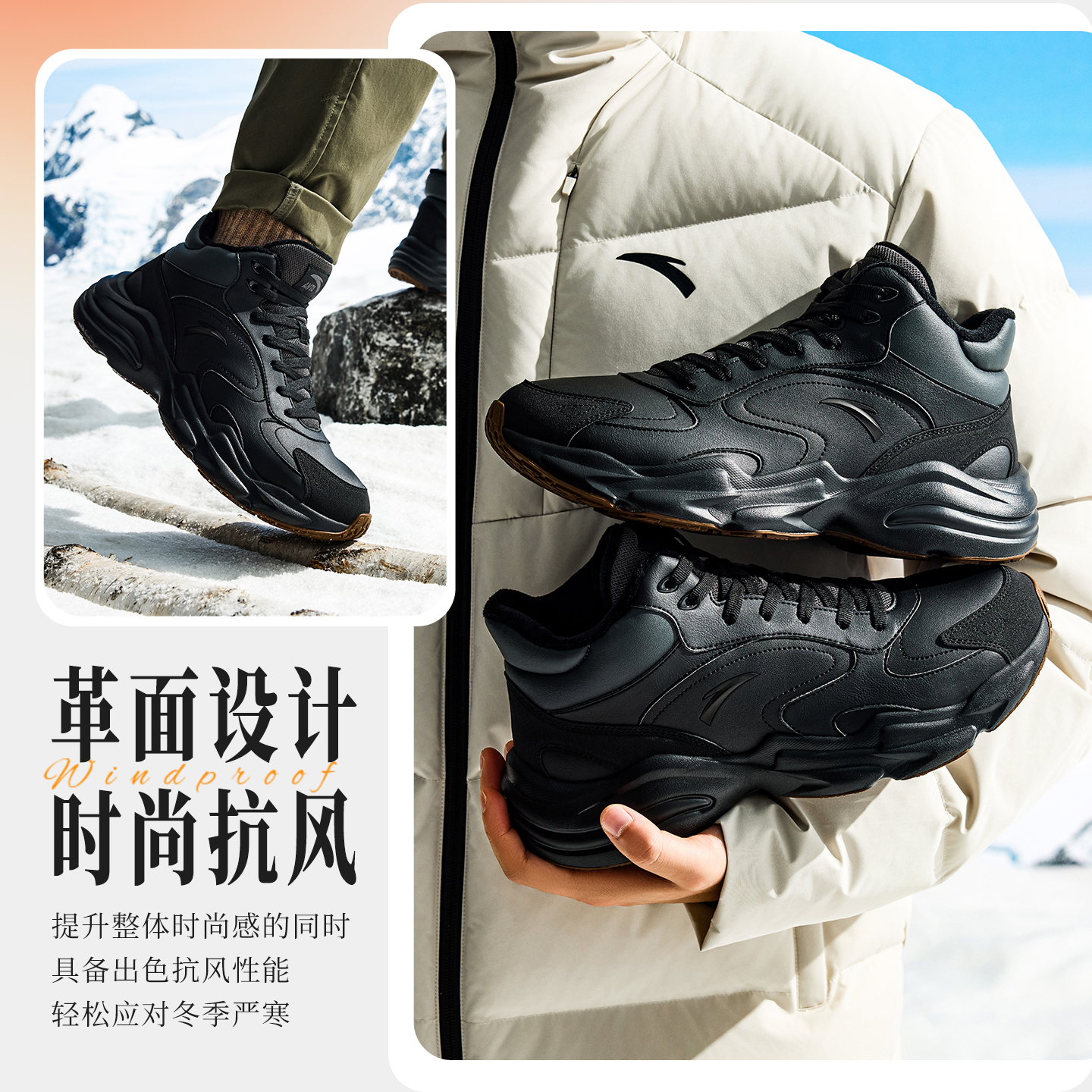 双11预售 官方黑色运动鞋 安踏行者保暖大棉鞋 秋冬休闲鞋 男 男鞋