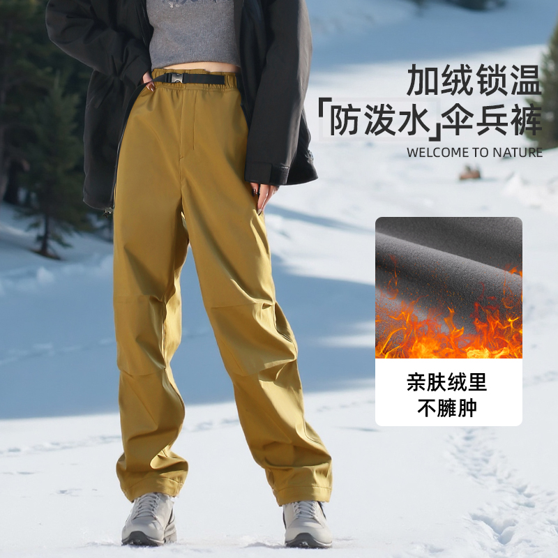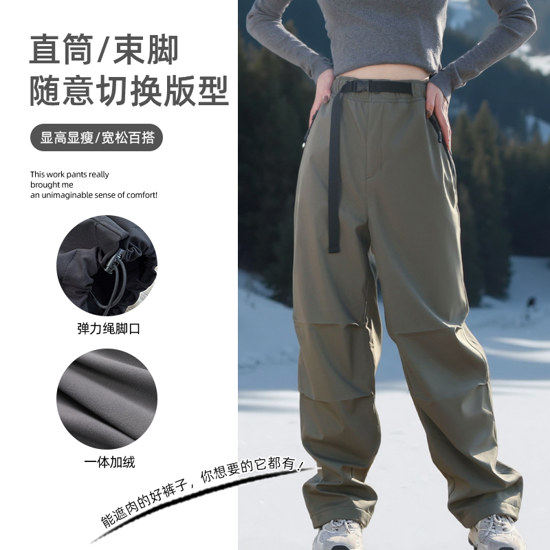 时尚 休闲百搭直筒长裤 工装 女宽松防风防泼水加绒伞兵裤 裤 2025秋季