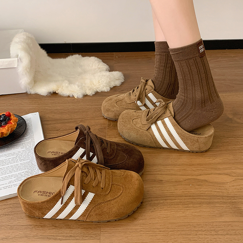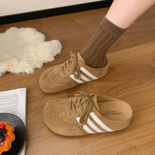 真皮 一脚蹬懒人博肯鞋 春秋勃肯鞋 女包头孕妇半拖外穿2025复古新款