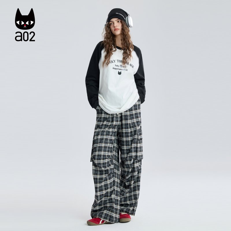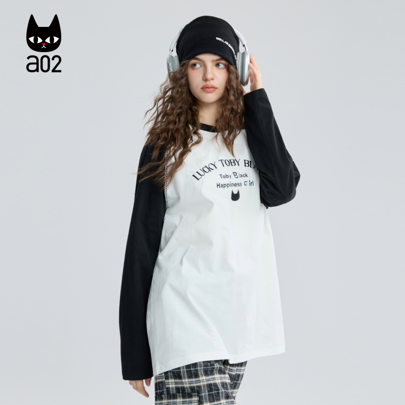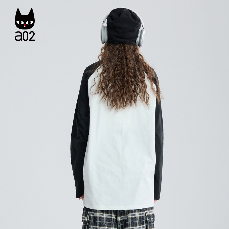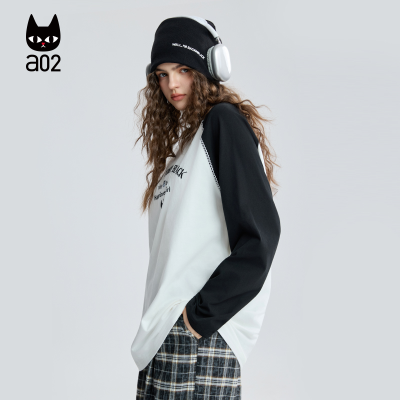 通勤穿搭打底衫 a02黑猫系列宽松圆领插肩袖 秋季 T恤女2025新款 长袖