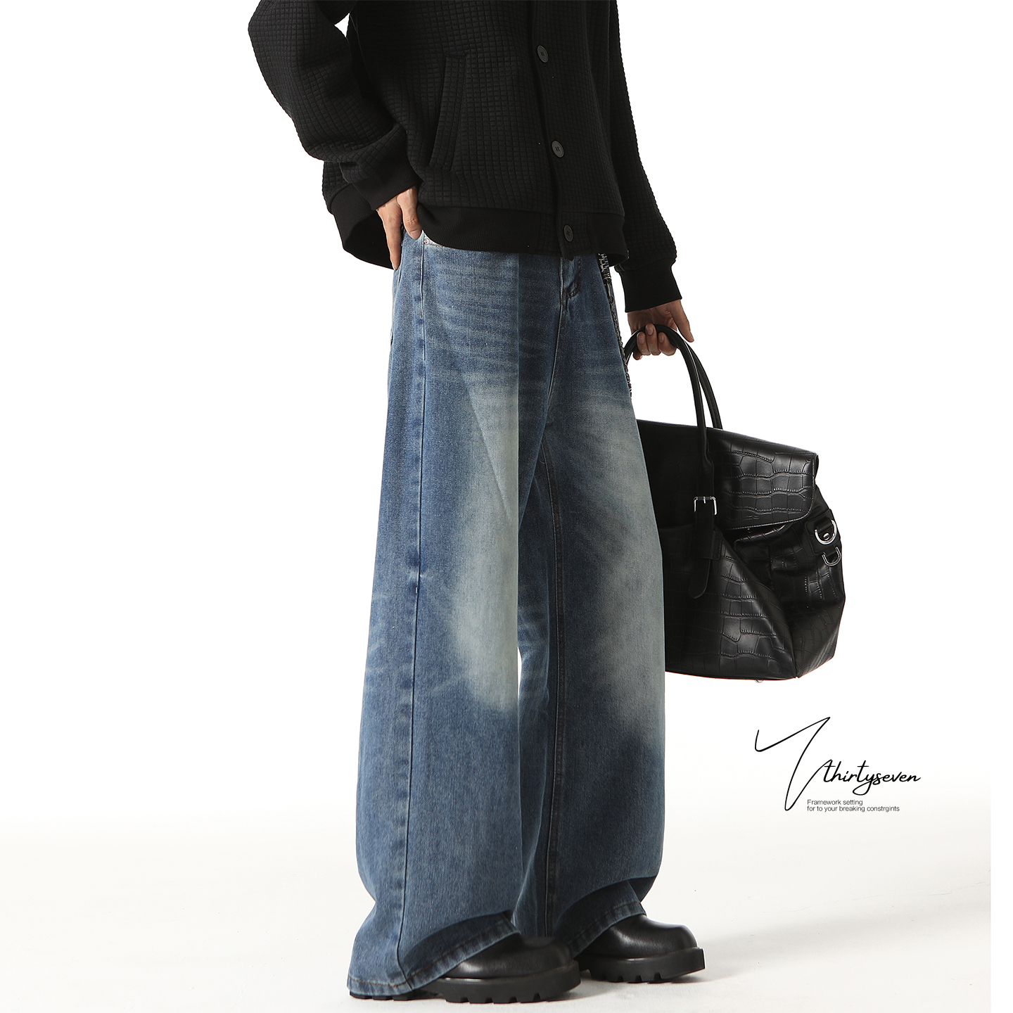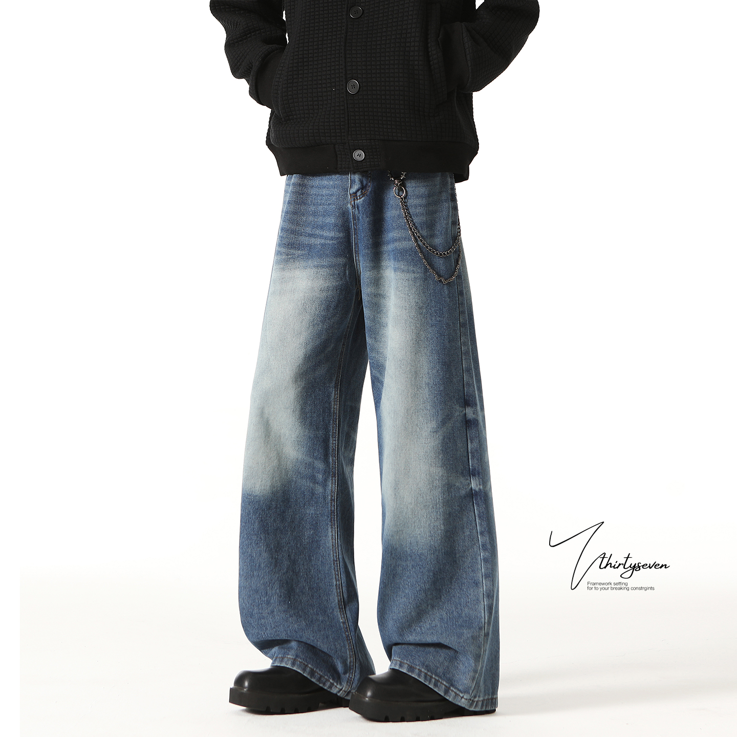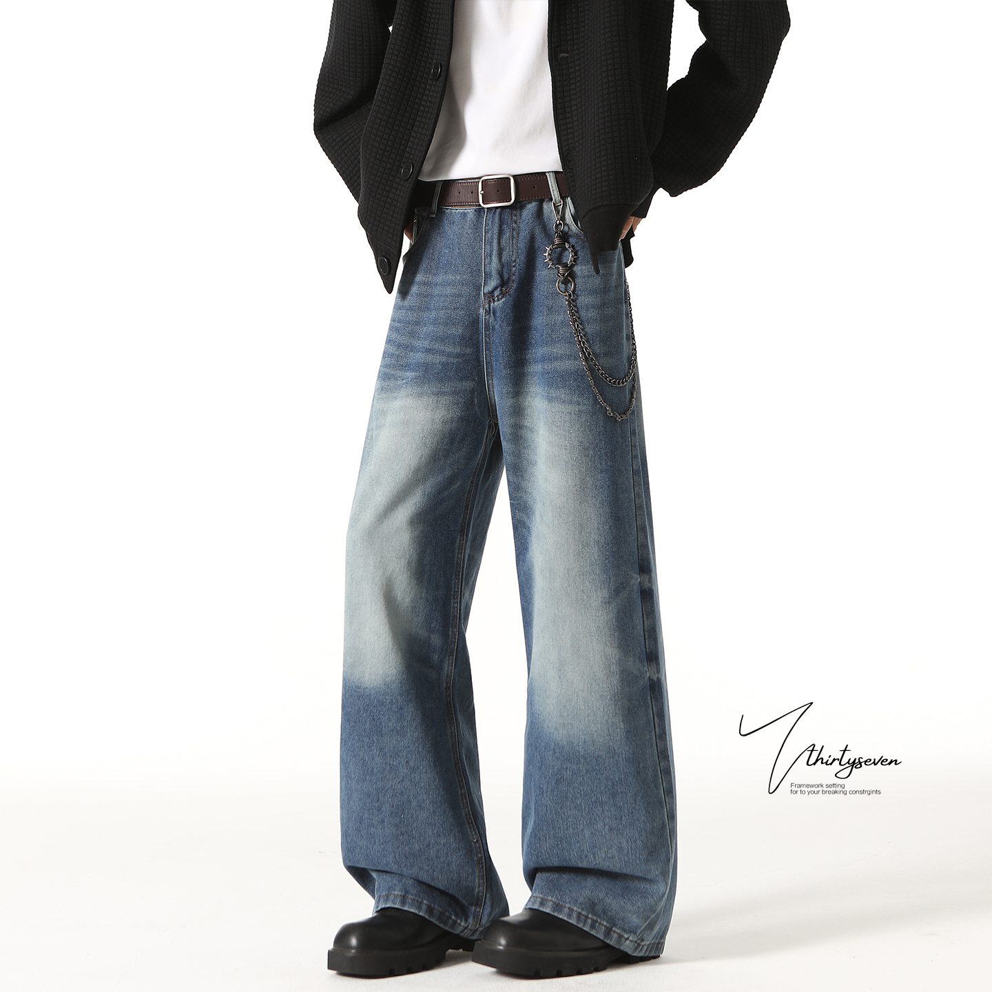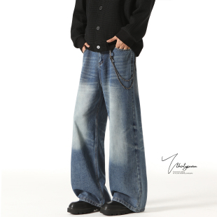 新款 长裤 男士 CHINISM赤尘 子宽松男裤 男直筒美式 裤 水洗浅色牛仔裤