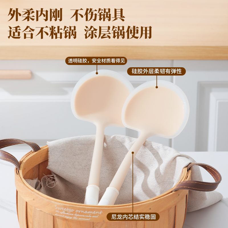 拜格硅胶锅铲蘑菇铲家用炒菜铲子耐高温食品级不粘锅专用加长炒勺