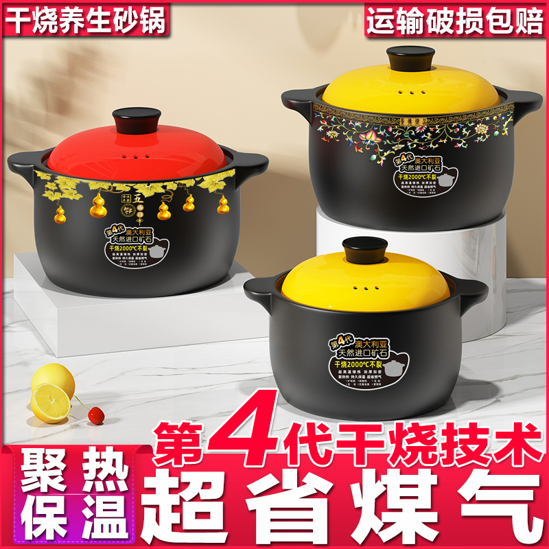 砂锅煲家用明火炖汤耐高温燃气干烧不裂大容量陶瓷煲仔饭煮粥沙锅