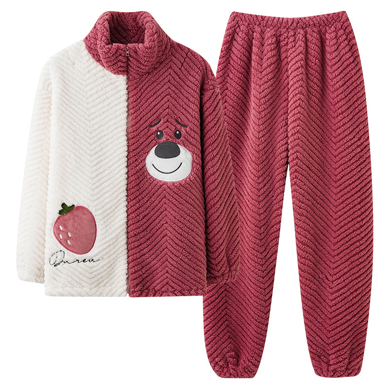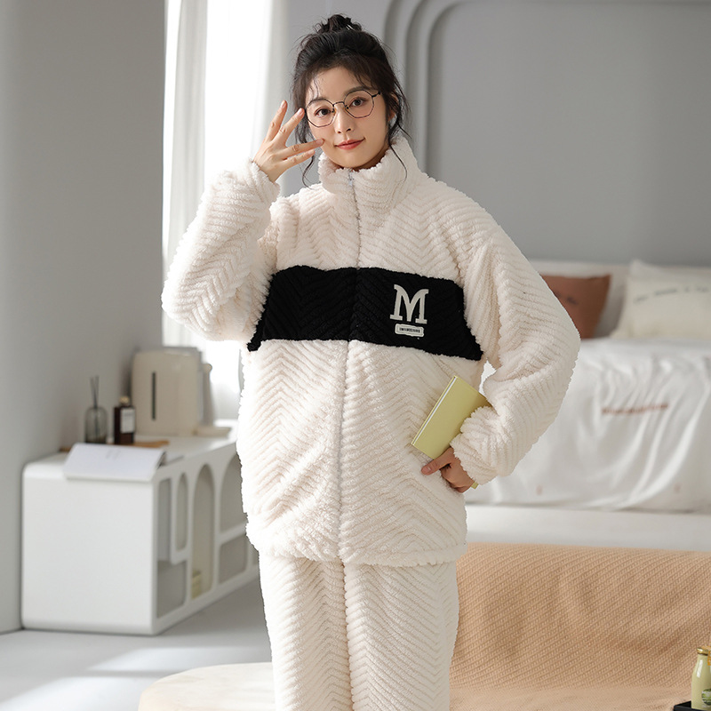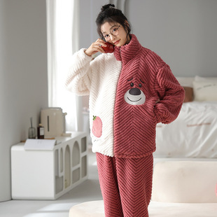 家居服冬季 芬腾女士睡衣秋冬法兰绒加厚套装 加绒珊瑚绒保暖加大码