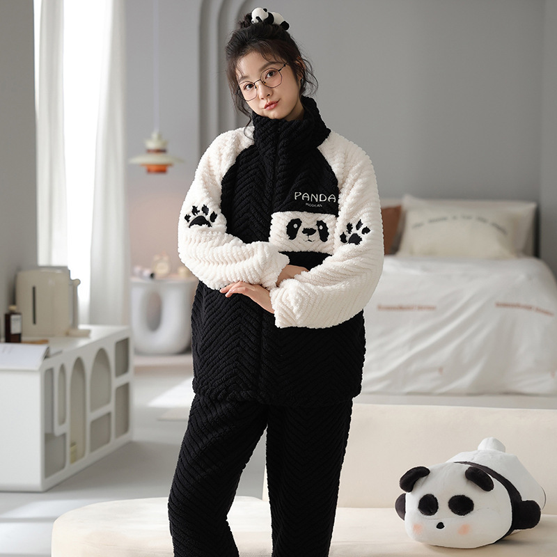tbh野兽派家居都市野兽黑豹法兰绒家居服套装 可外穿情侣睡衣冬