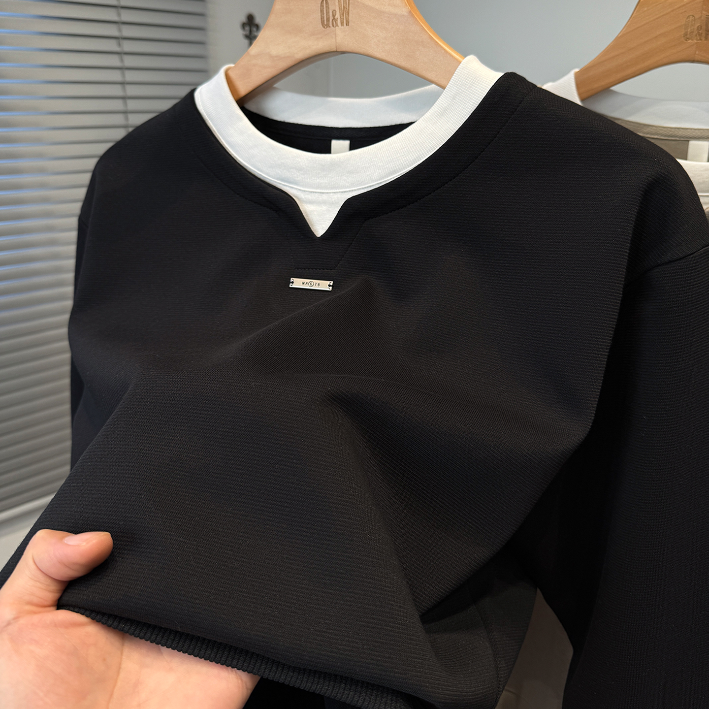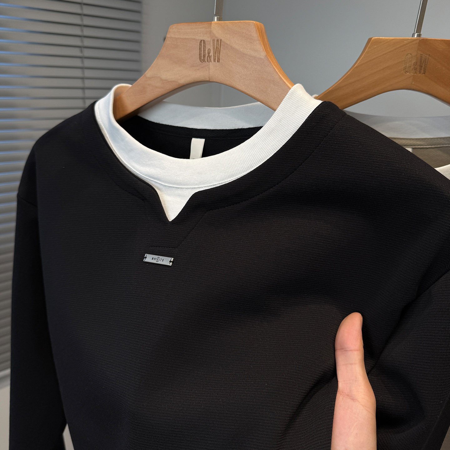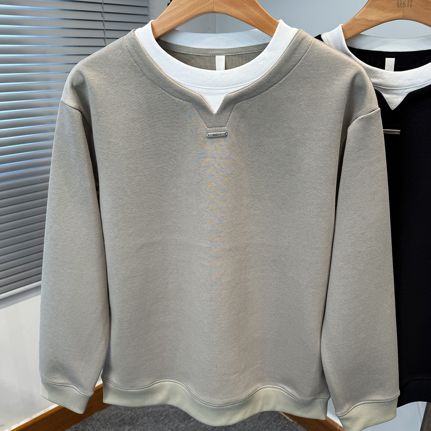 男长袖 青年潮流休闲套头打底衫 t恤圆领内搭 春秋季 假两件卫衣男款