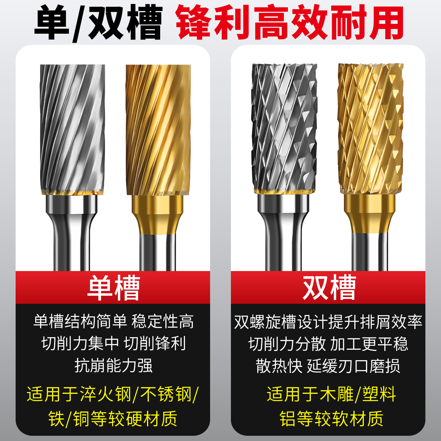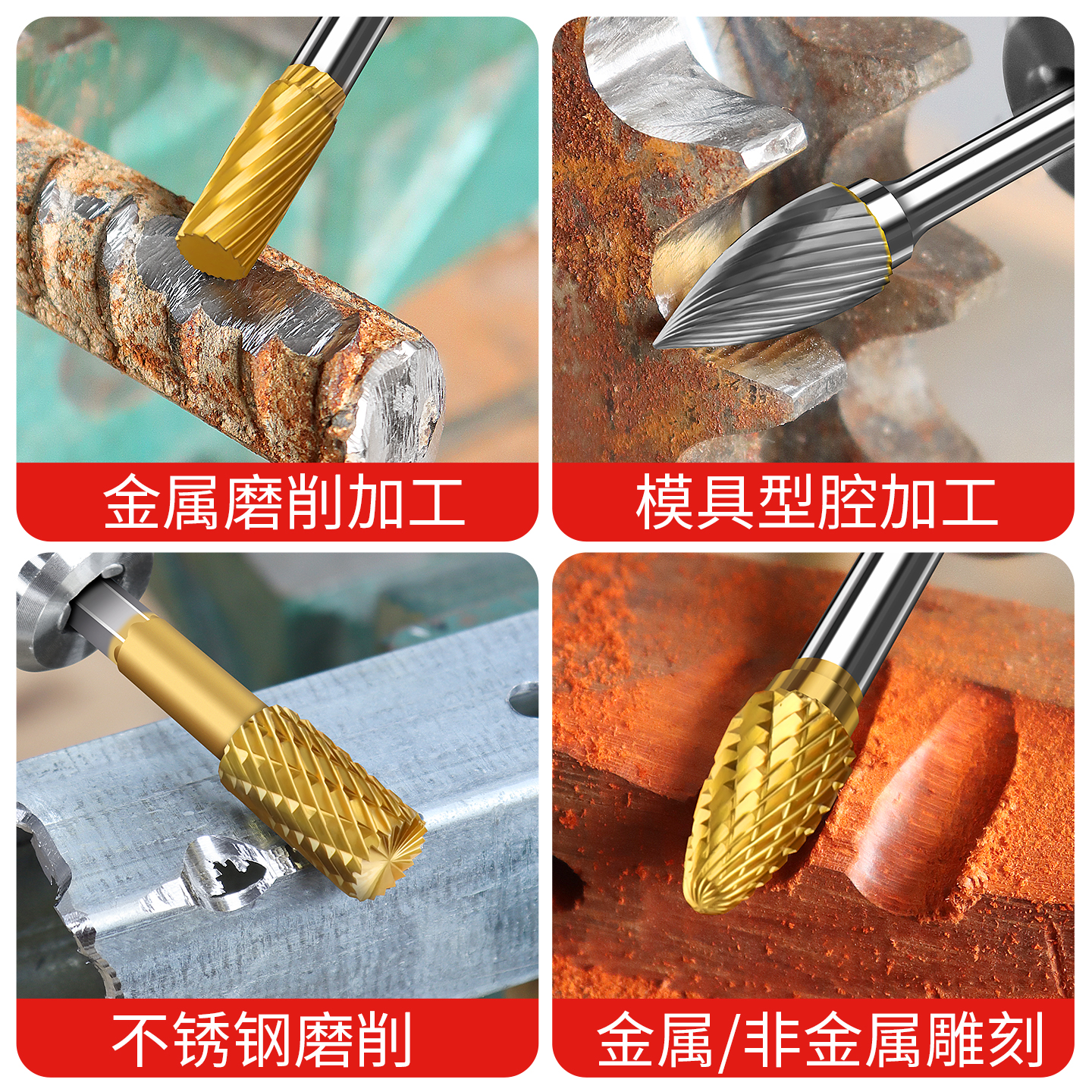 钨钢旋转锉硬质合金磨头金属木工打磨头镀钛加硬扩孔铣刀6 10套装