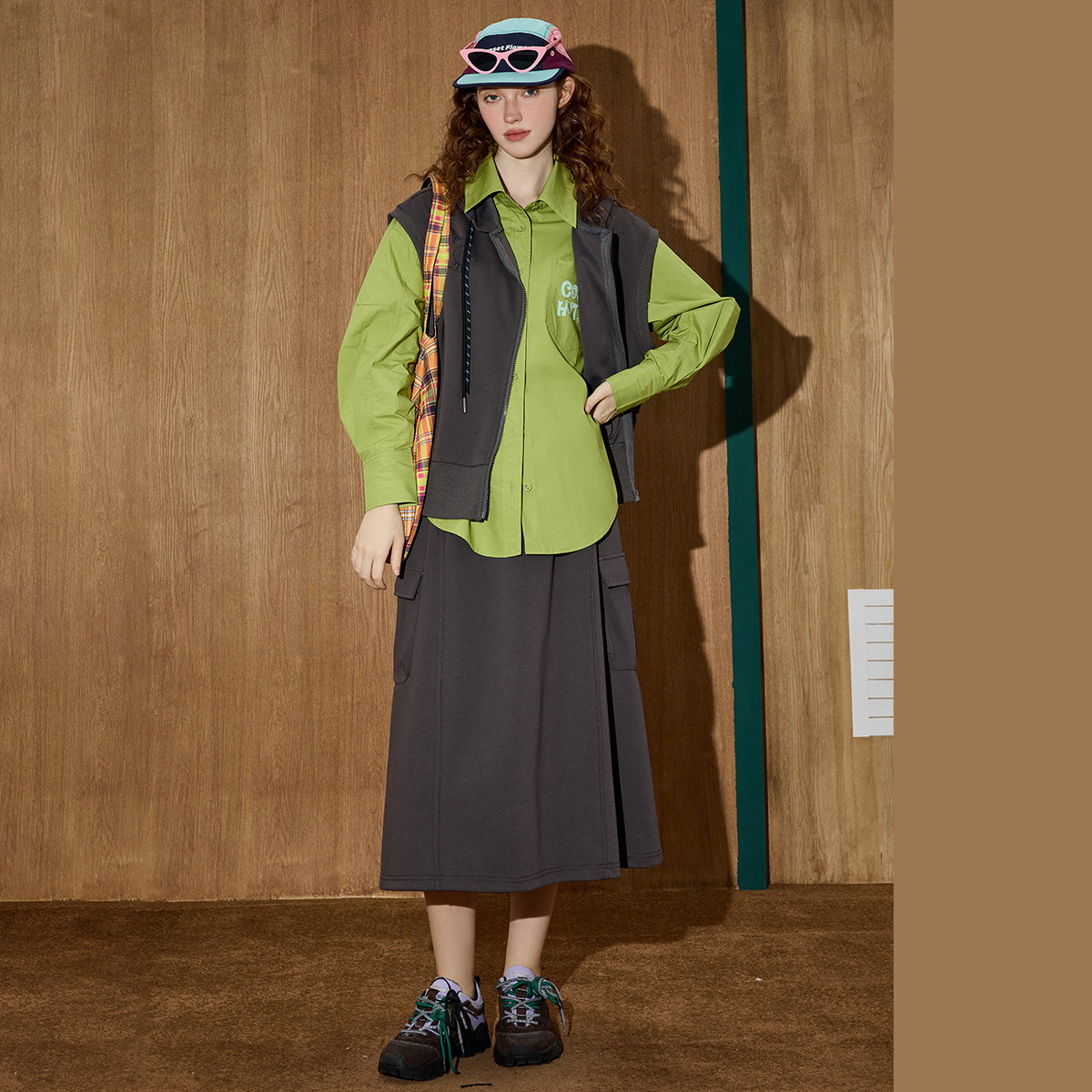 马甲开衫 绿色甜美双排扣针织毛衣连衣裙女秋冬新款 氛围感穿搭无袖