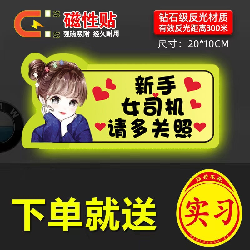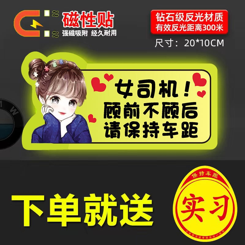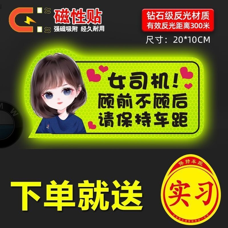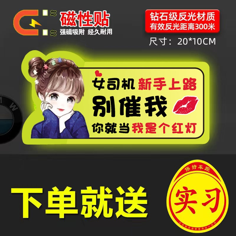 饰创意搞笑磁性贴标志 女司机磁贴磁吸汽车贴纸装 新手实习车贴