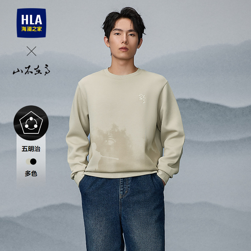 圆领五明治薄款 时尚 上衣男 海澜之家山不在高系列卫衣25秋新款 HLA