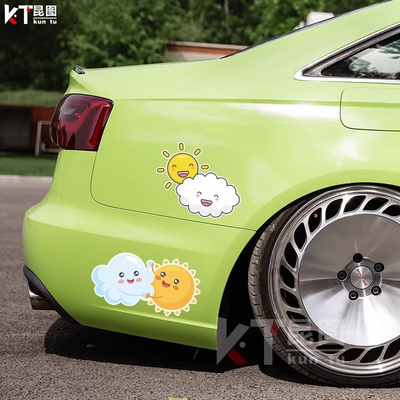 遮挡划痕汽车贴纸创意个性 饰电动瓶车身防水 微笑云朵后视镜卡通装