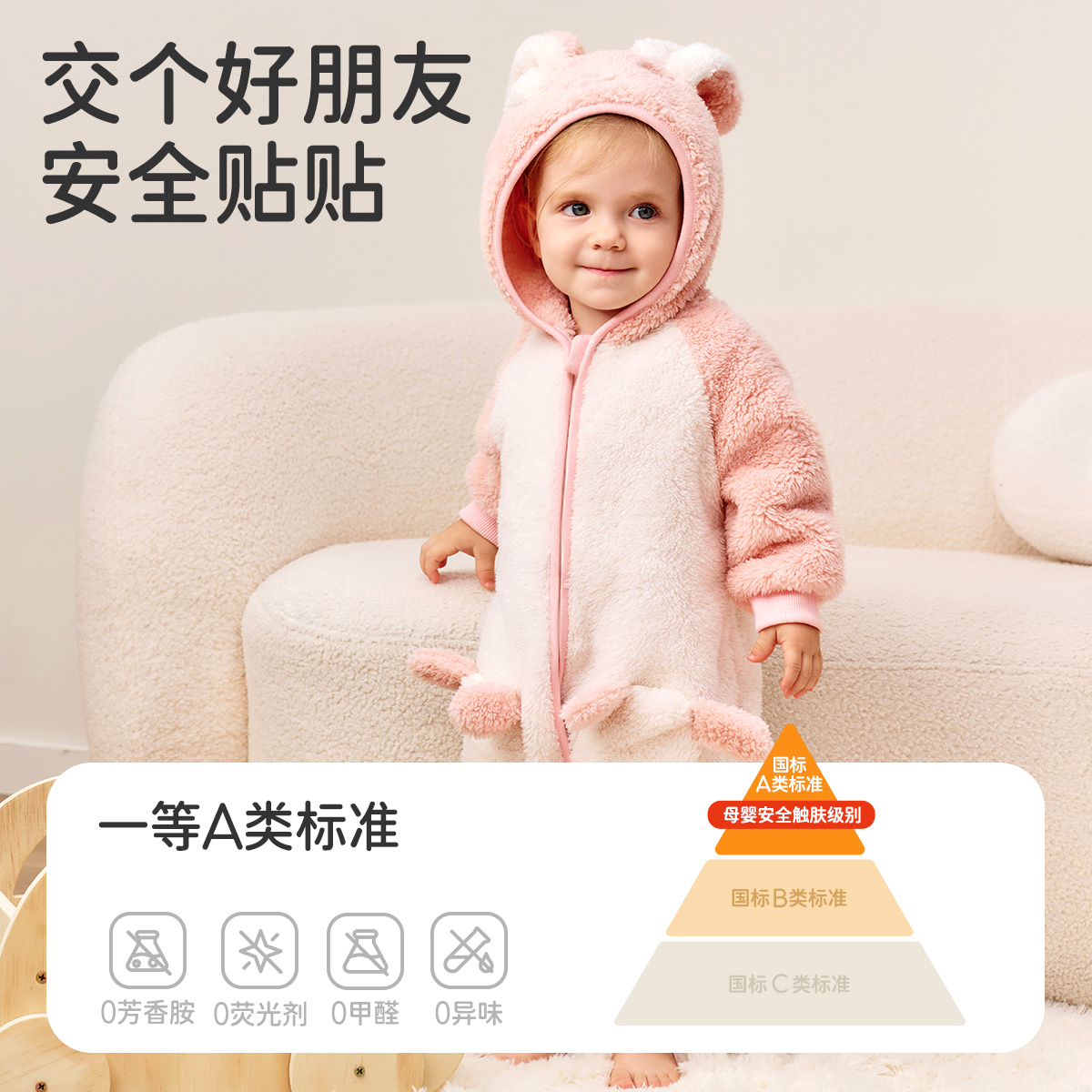 婧麒新生婴儿秋冬季 哈衣 加厚连体衣小月龄宝宝保暖外出抱抱绒冬装