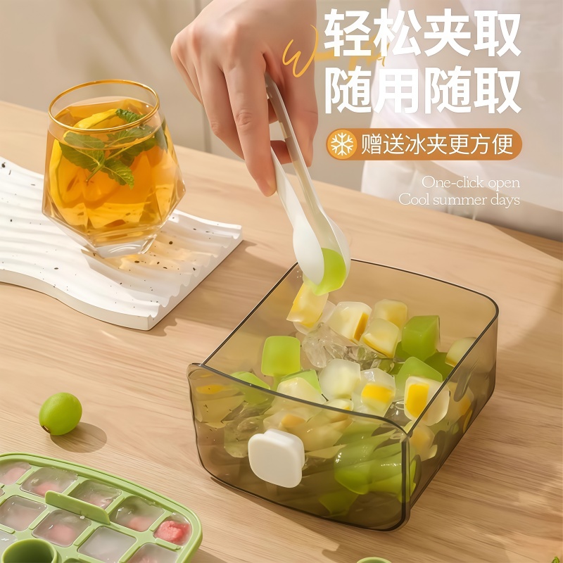 按压冰格冰块模具双层制冰盒冻冰块神器大容量手提式 储冰赠送冰夹