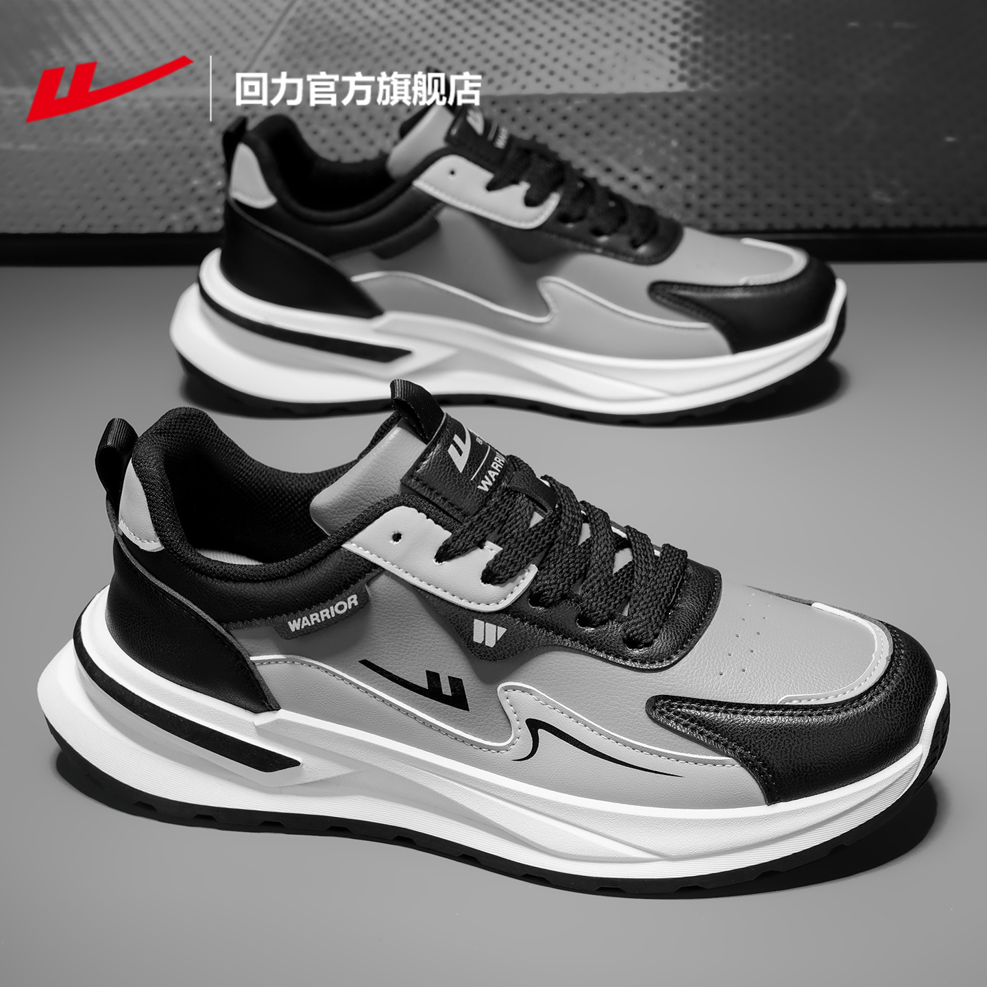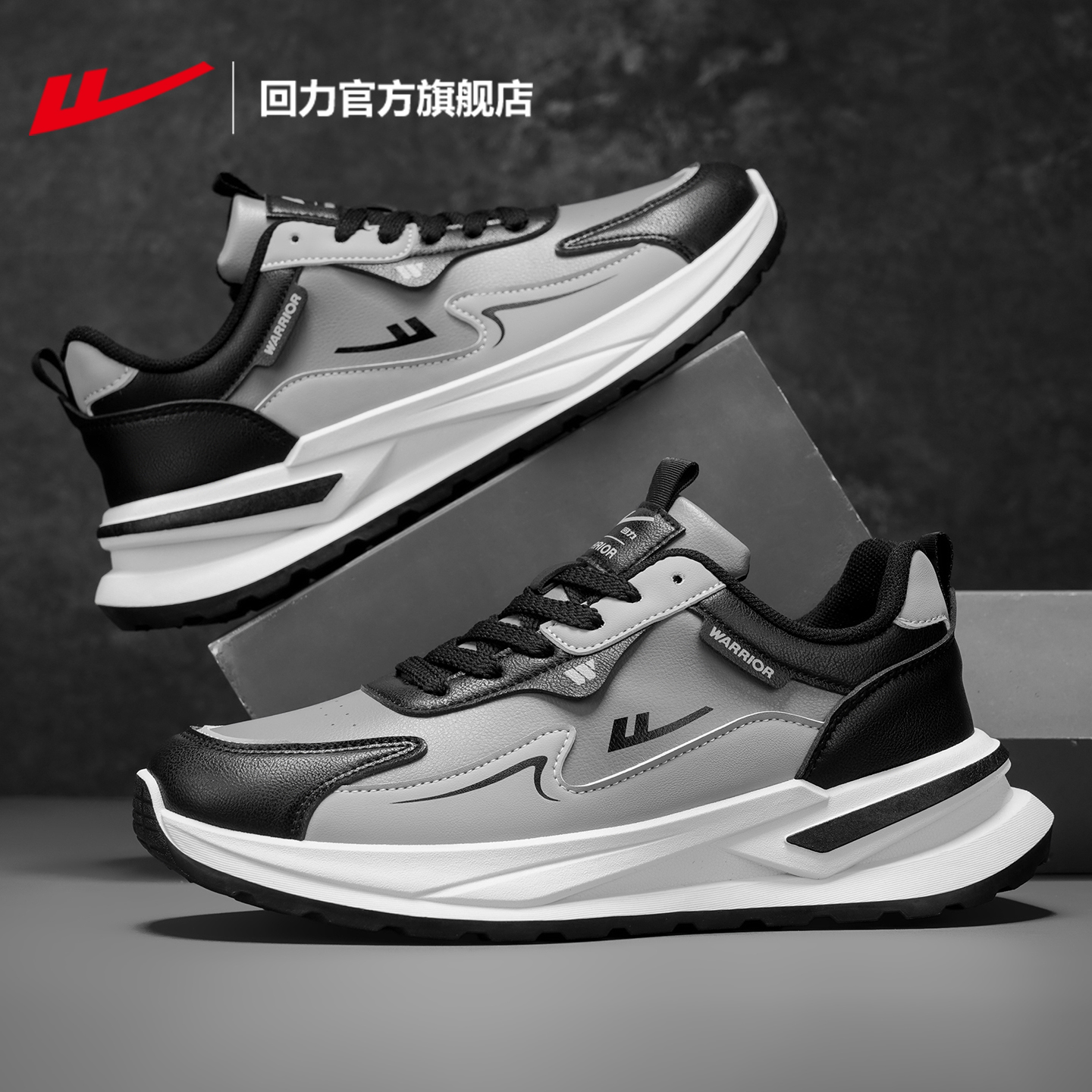 男跑步厚底休闲鞋 回力官方旗舰店男鞋 皮面防水运动鞋 秋季 2025新款
