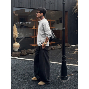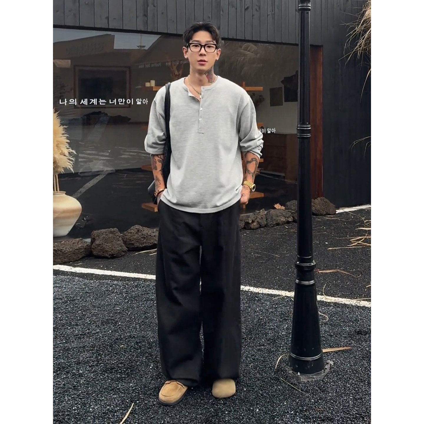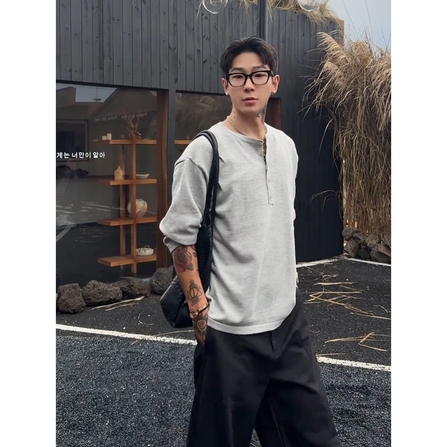 卫衣 圆领内搭打底衫 花灰色华夫格长袖 t恤男生高级感亨利领polo衫