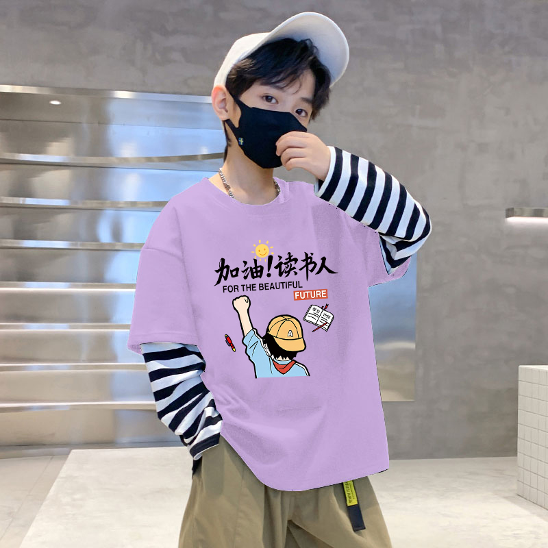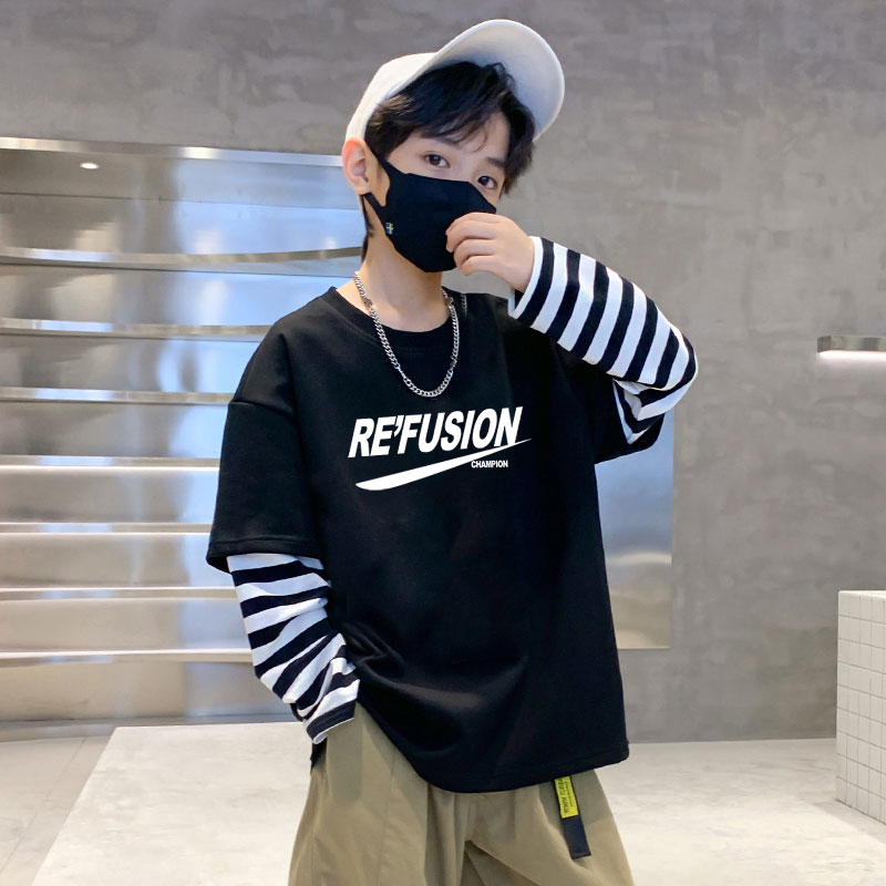 男孩纯棉假两件内搭打底衫 童装 2025新款 t恤儿童秋装 潮酷 男童长袖