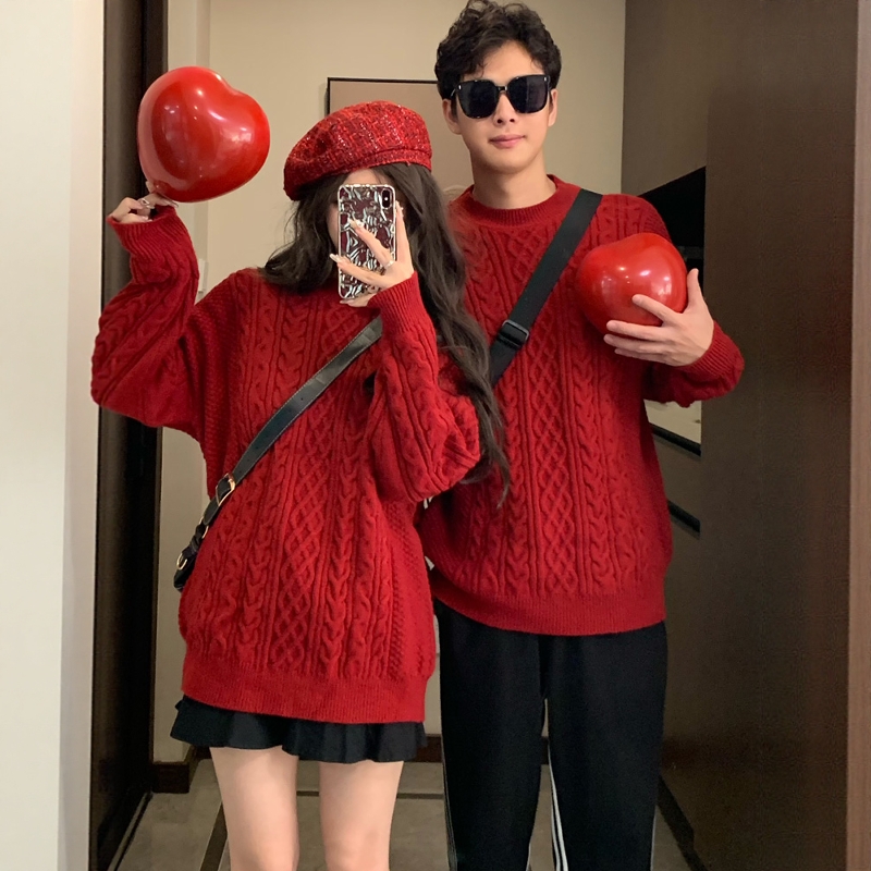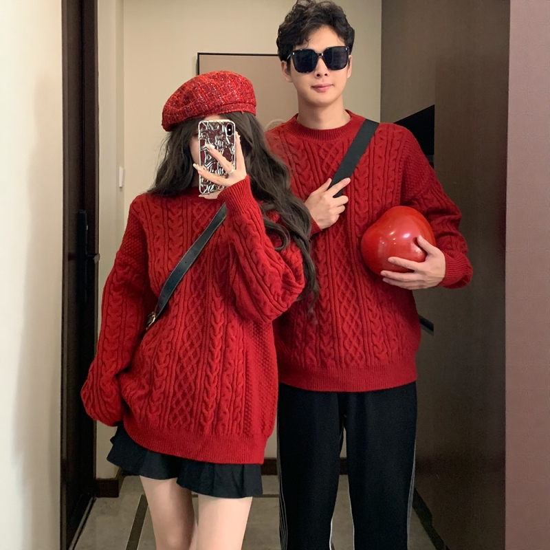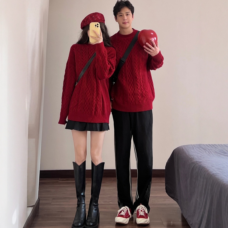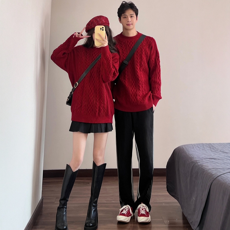 慵懒风领证登记订婚宴针织衫 大码 2025圣诞新年毛衣男女同款 情侣装