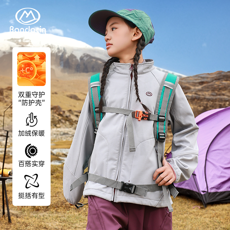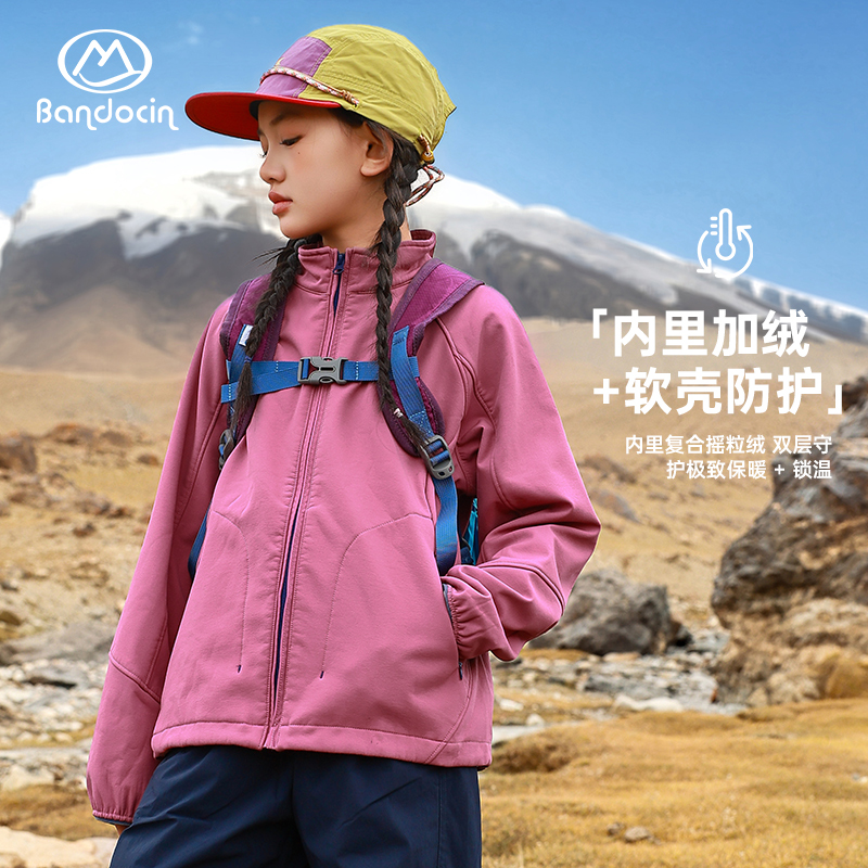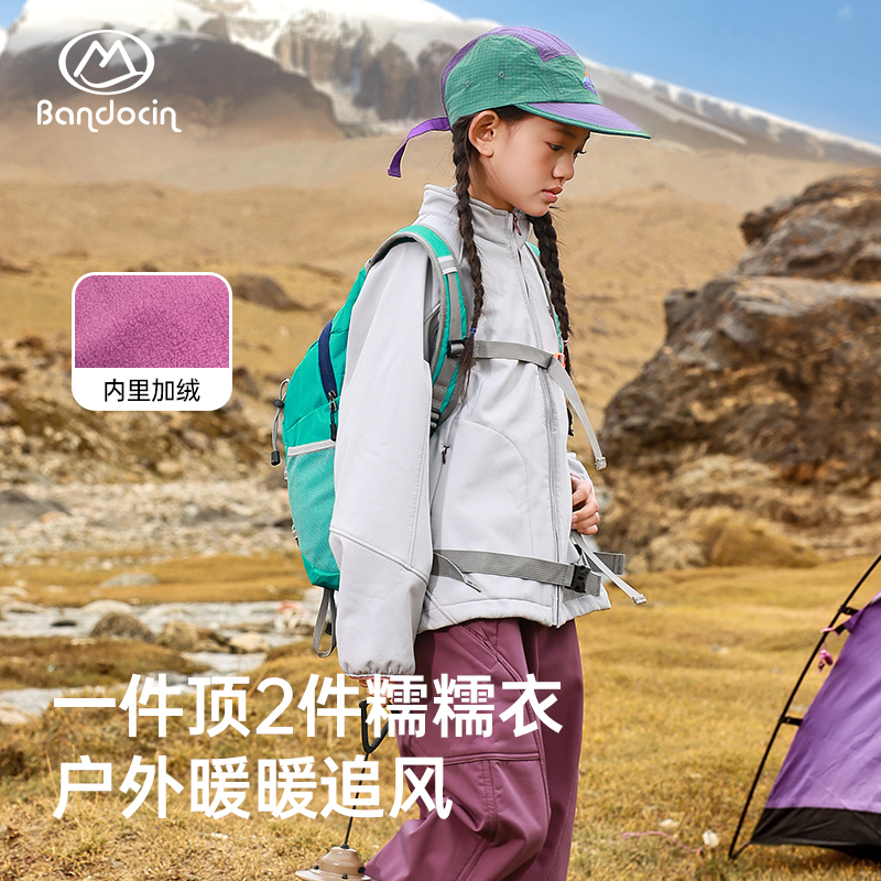 加绒加厚外套洋气新款 半度闲女童冬装 儿童棉衣潮 户外软壳衣