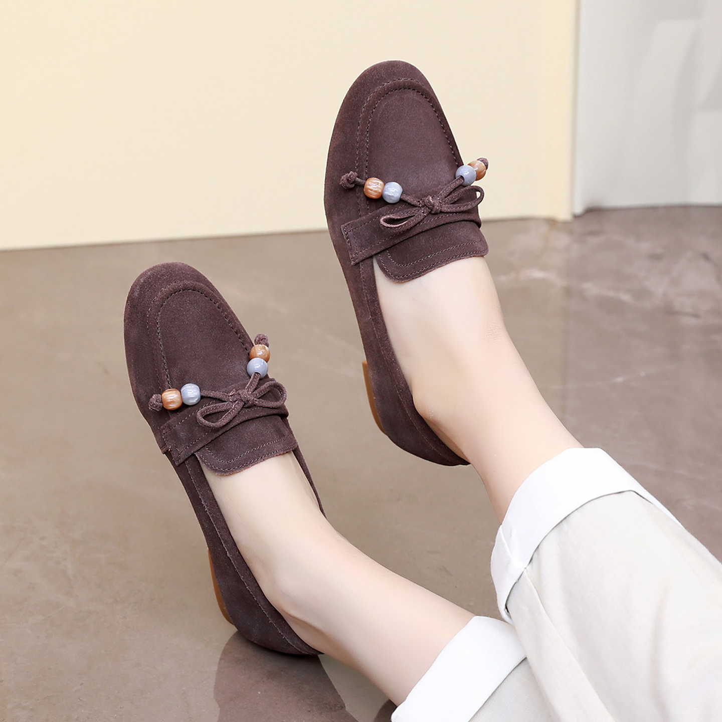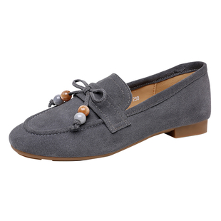 42大码 真皮平底单鞋 软底舒适流苏豆豆鞋 一脚蹬懒人鞋 女2025新款