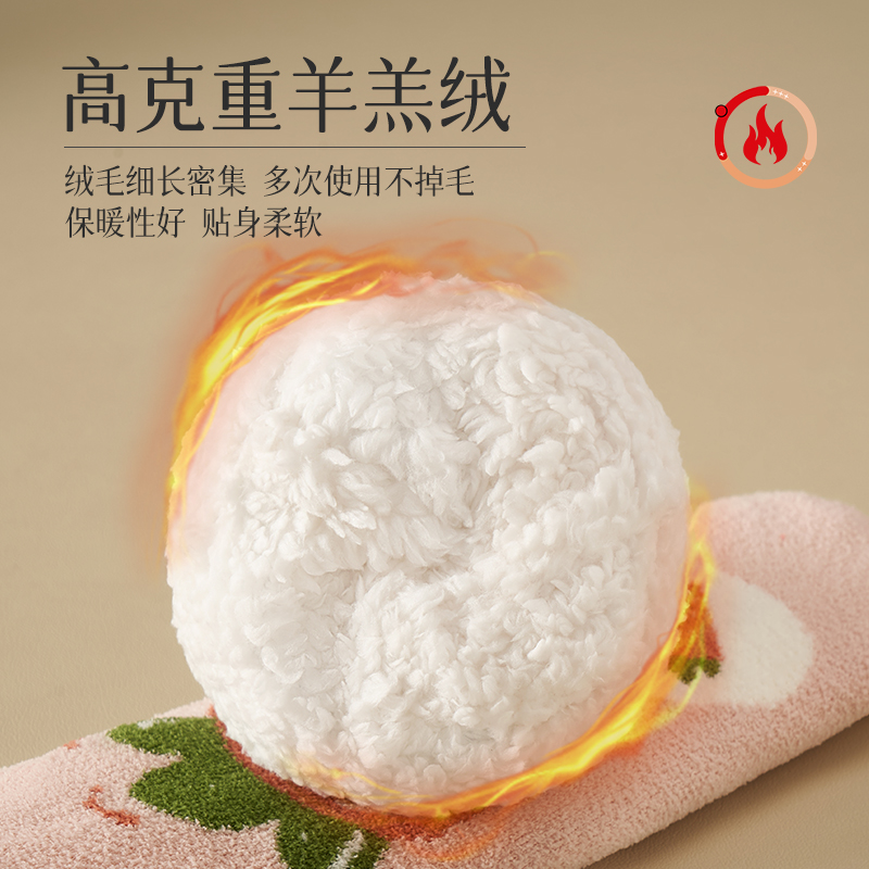 OLN超厚羊羔绒袜子女秋冬加绒加厚保暖卡通可爱中筒袜居家睡眠袜