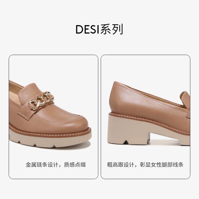 通勤小皮鞋 Naturalizer娜然粗跟厚底一脚蹬乐福鞋 捡漏 女 断码