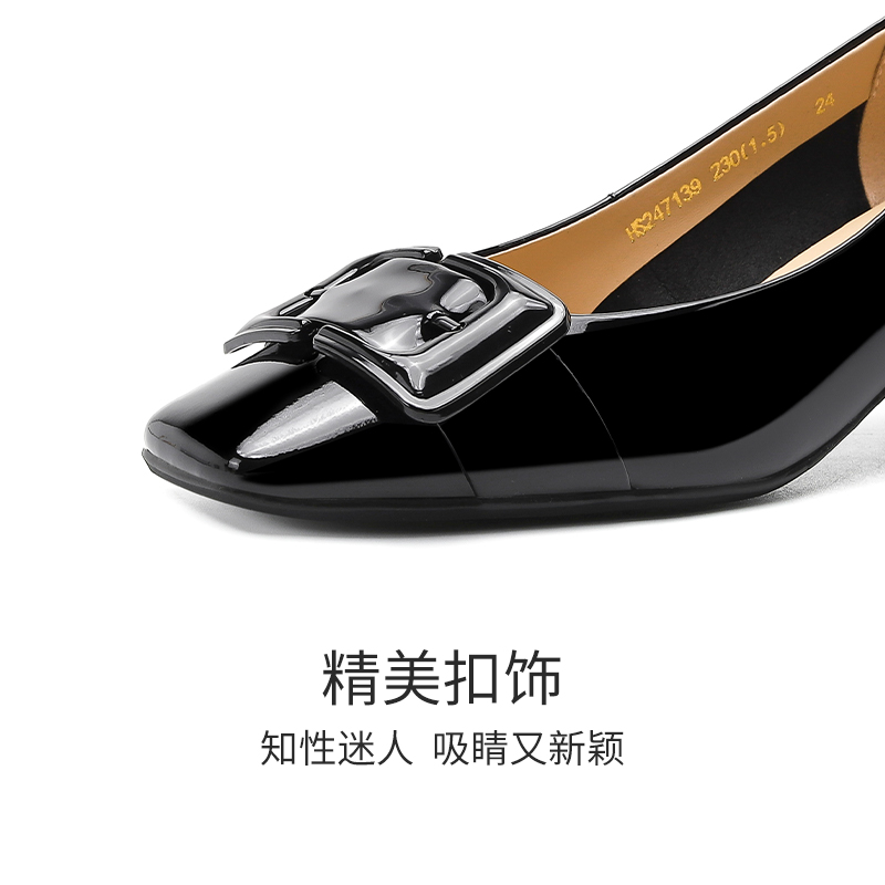 商场新款 百思图25秋季 浅口单鞋 小红鞋 女婚鞋 一脚蹬皮鞋 梦中人