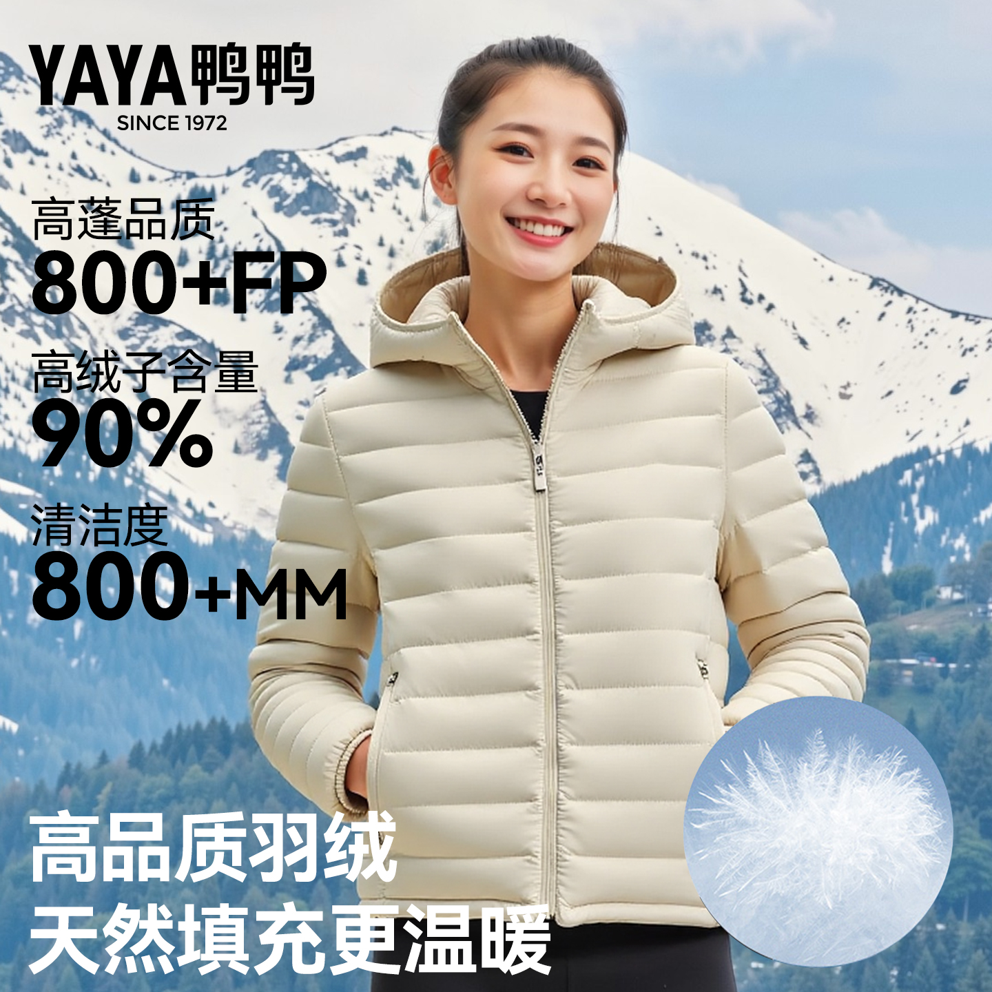 鸭鸭户外露营排骨羽绒服女士2025秋冬反季 连帽徒步外套 轻薄短款