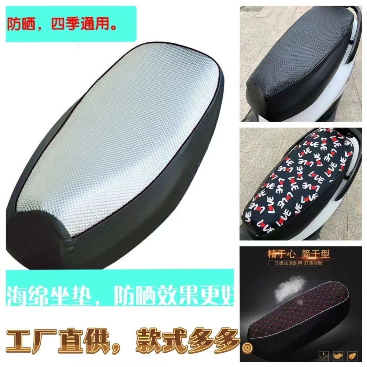 电瓶电动车座椅套防晒防水座位隔热皮套四季 通用踏板摩托车坐垫套