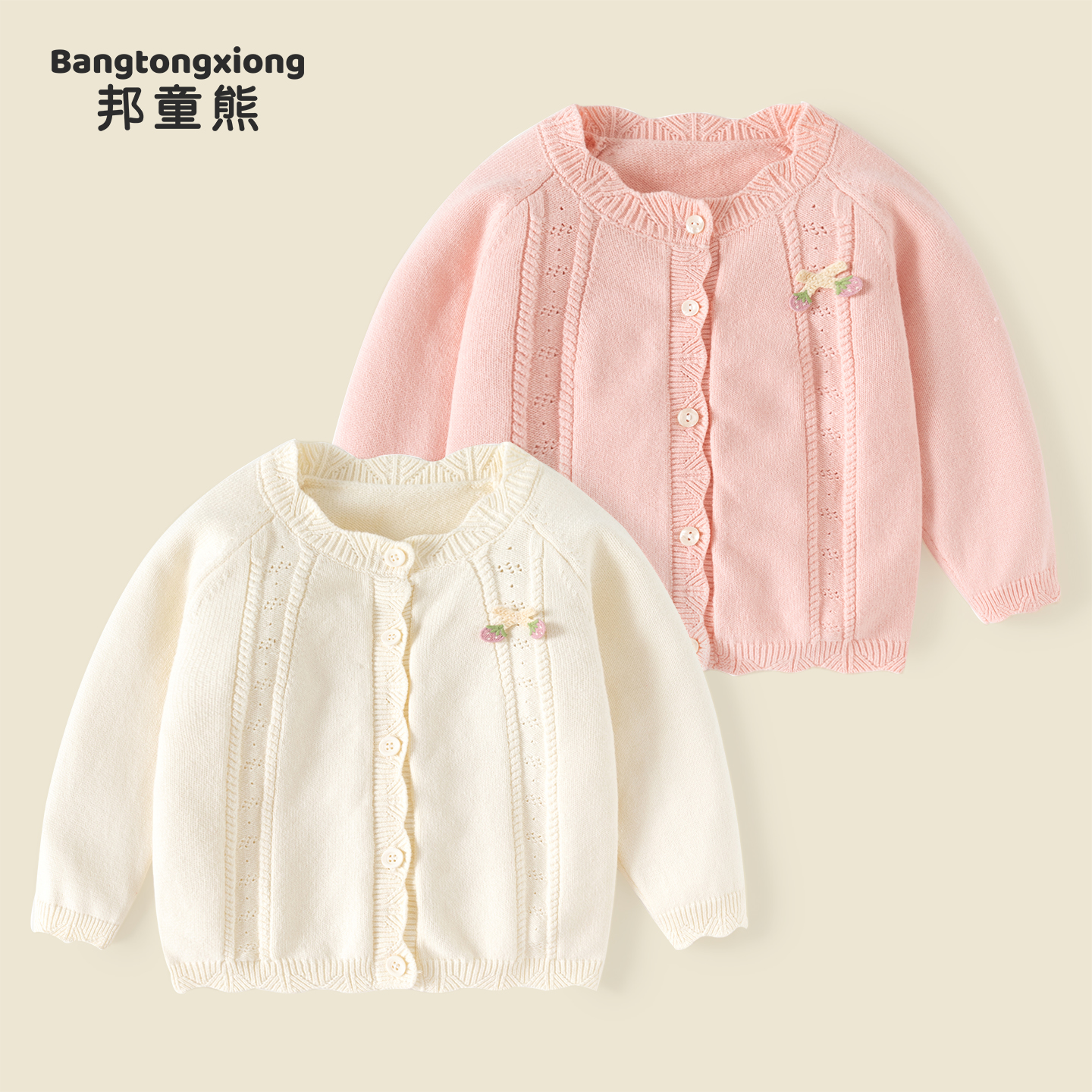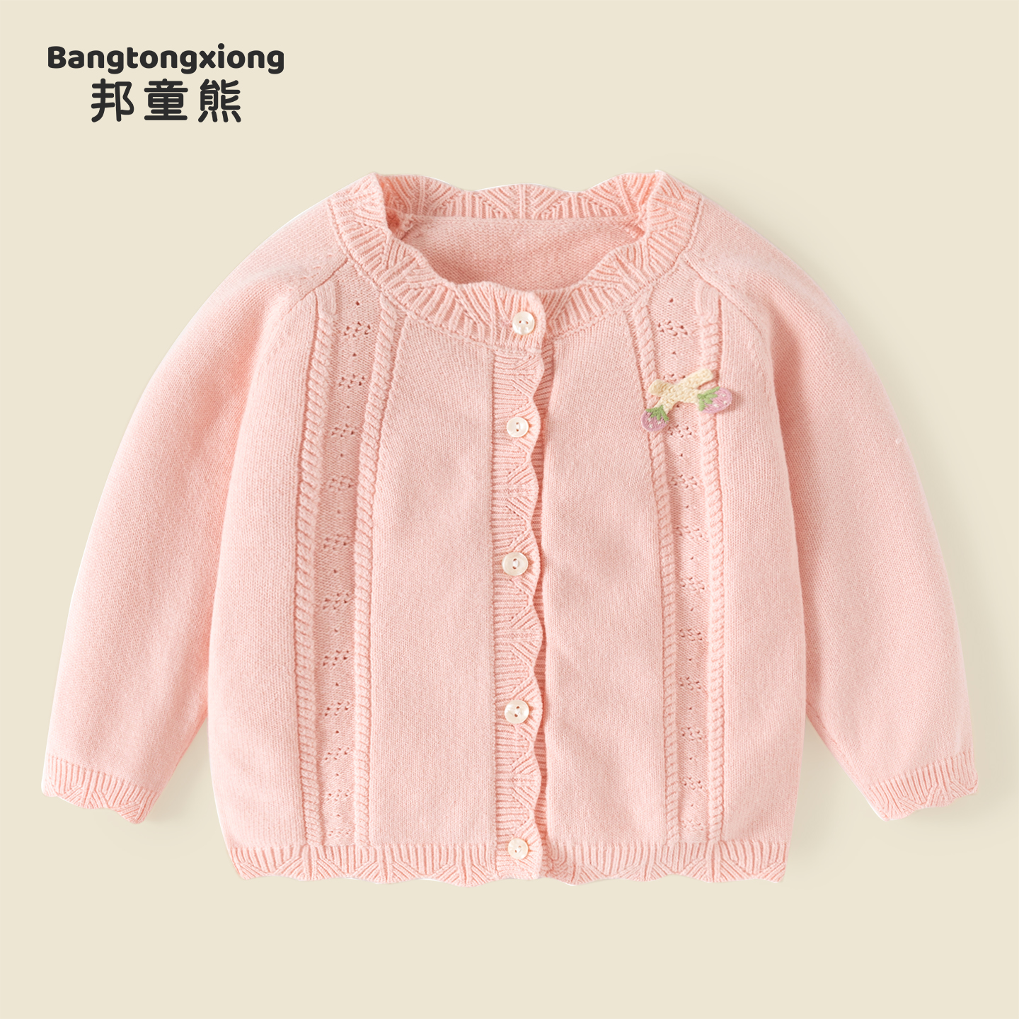 洋气外套儿童秋款 女童开衫 宝宝秋季 新款 毛线衣 毛衣春秋婴儿针织衫
