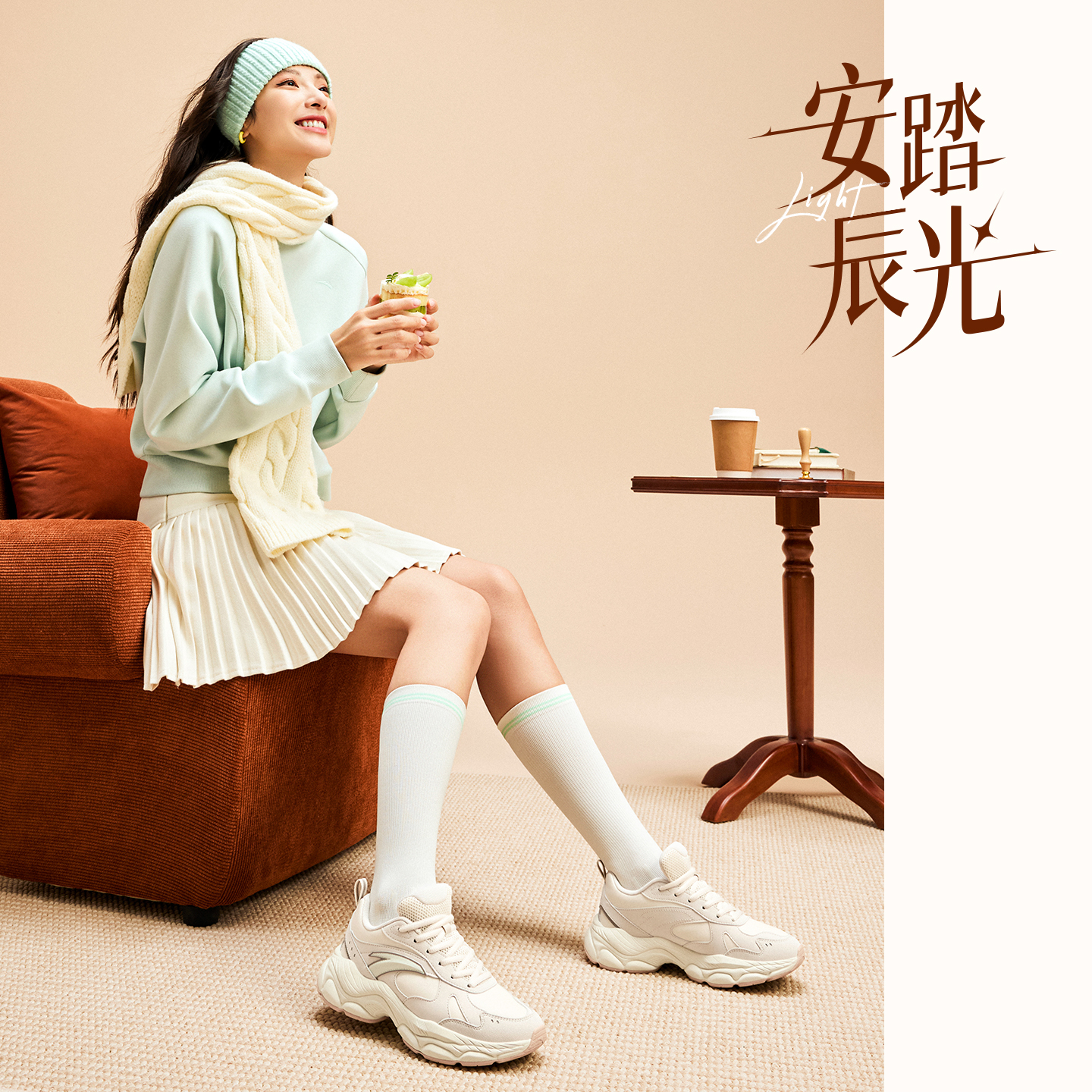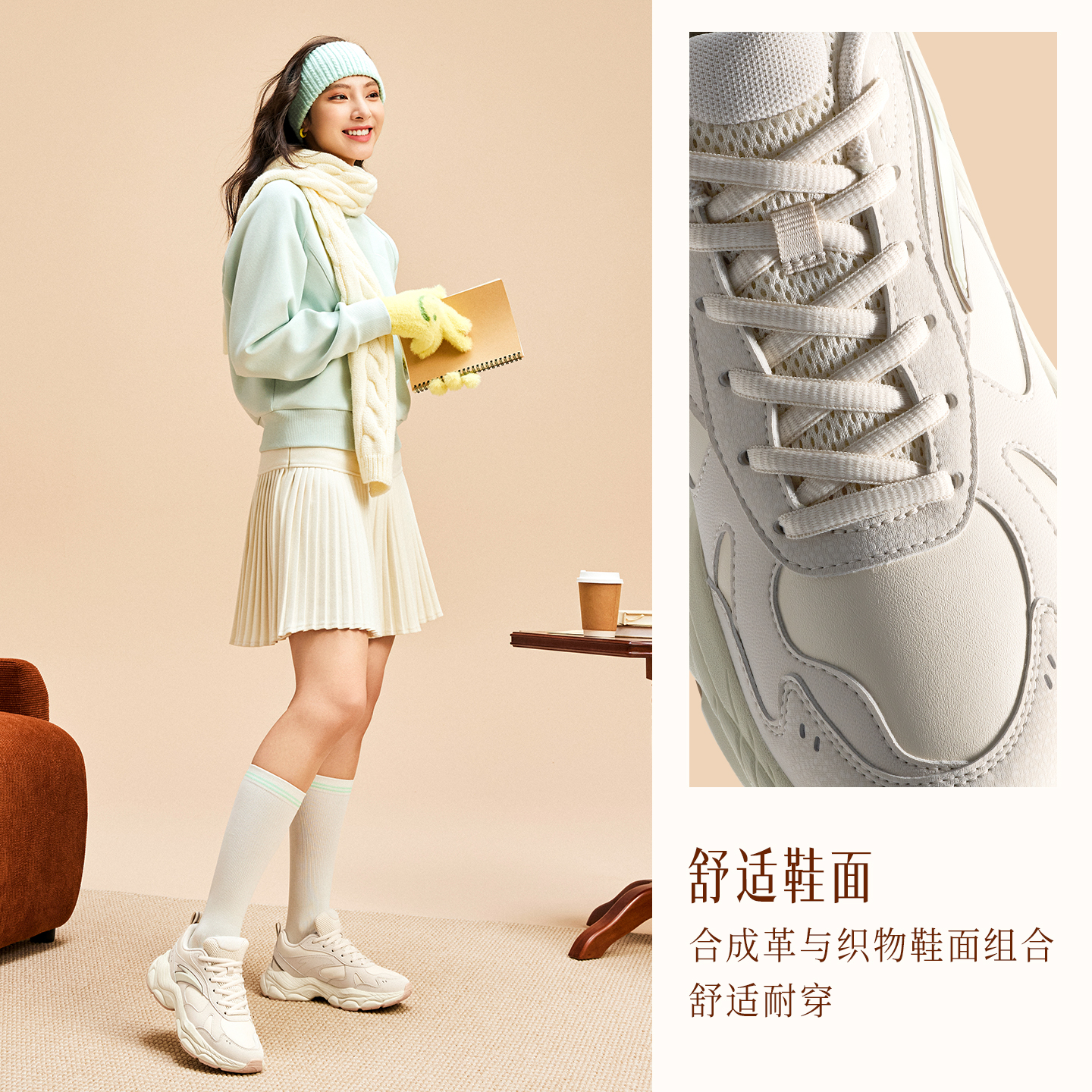 女鞋 秋季 舒适厚底增高小白鞋 安踏元 百搭运动鞋 板鞋 轻便休闲鞋 年