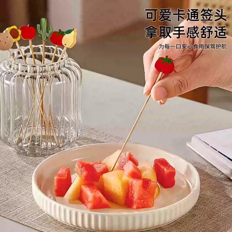 一次性水果叉汉堡竹签创意水果签家用高级食品西瓜小叉子水果牙签