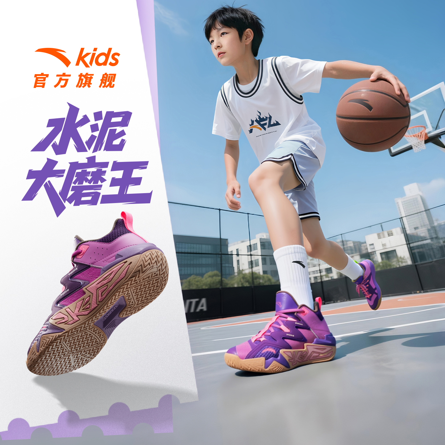 防滑耐磨运动鞋 缓震童鞋 男大童25秋季 新水泥氪星|安踏儿童篮球鞋