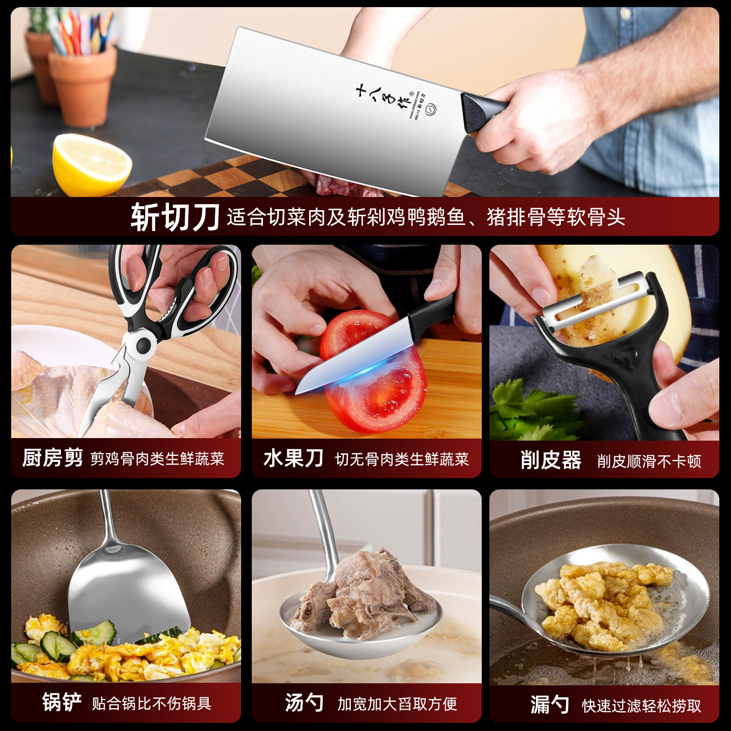 十八子作刀具套装 组合菜刀家用砍骨专用厨房锋利切菜刀菜板二合一