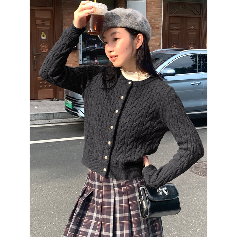 NOB真维斯青少年绞花圆领针织开衫 学院风毛衣外套 女春秋2025新款