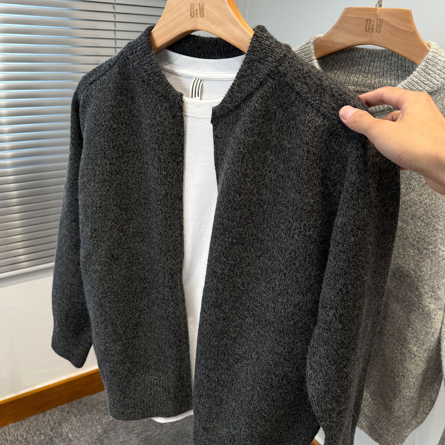 潮牌复古纯色针织衫 V37美式 秋季 毛衣男款 外套 慵懒风chic纽扣开衫