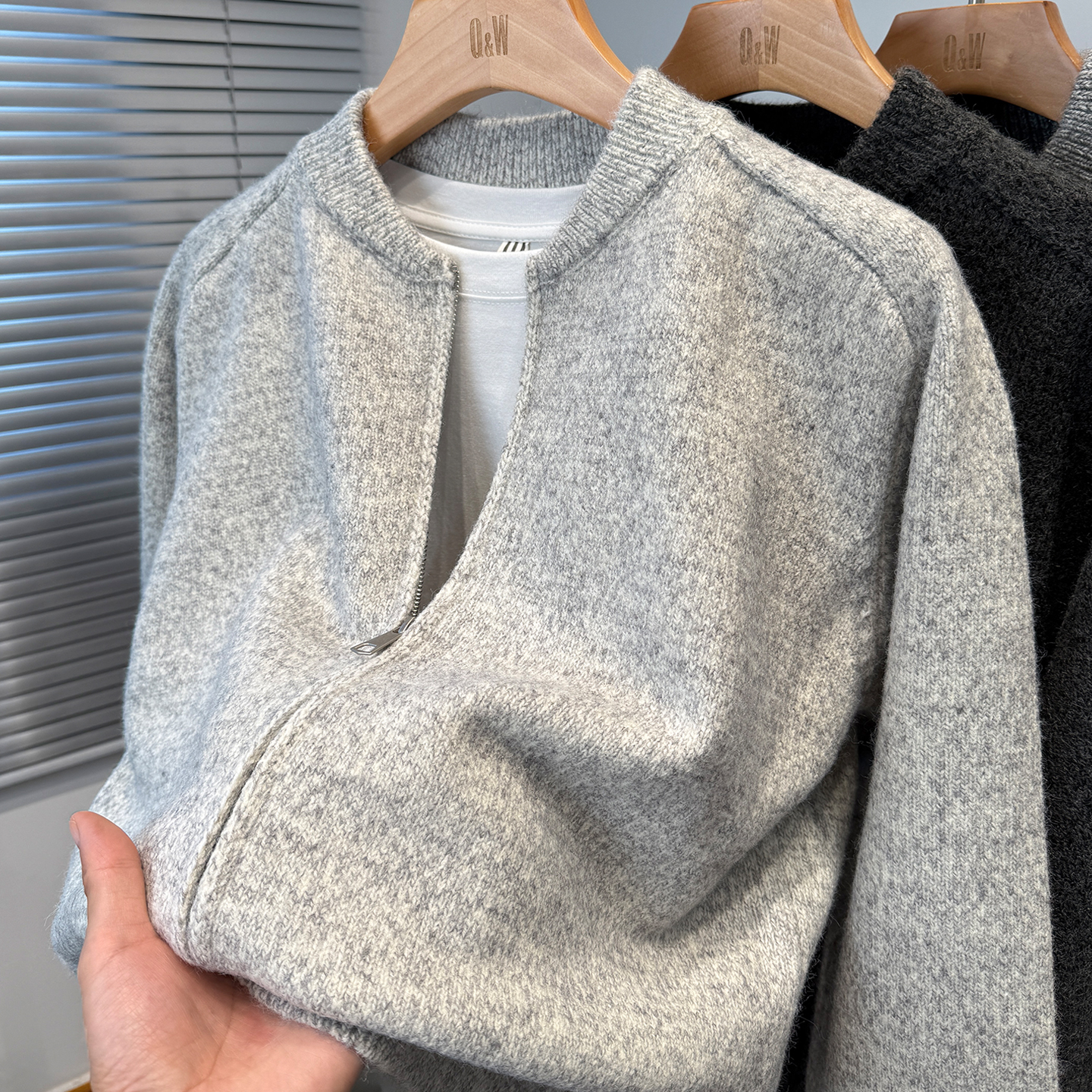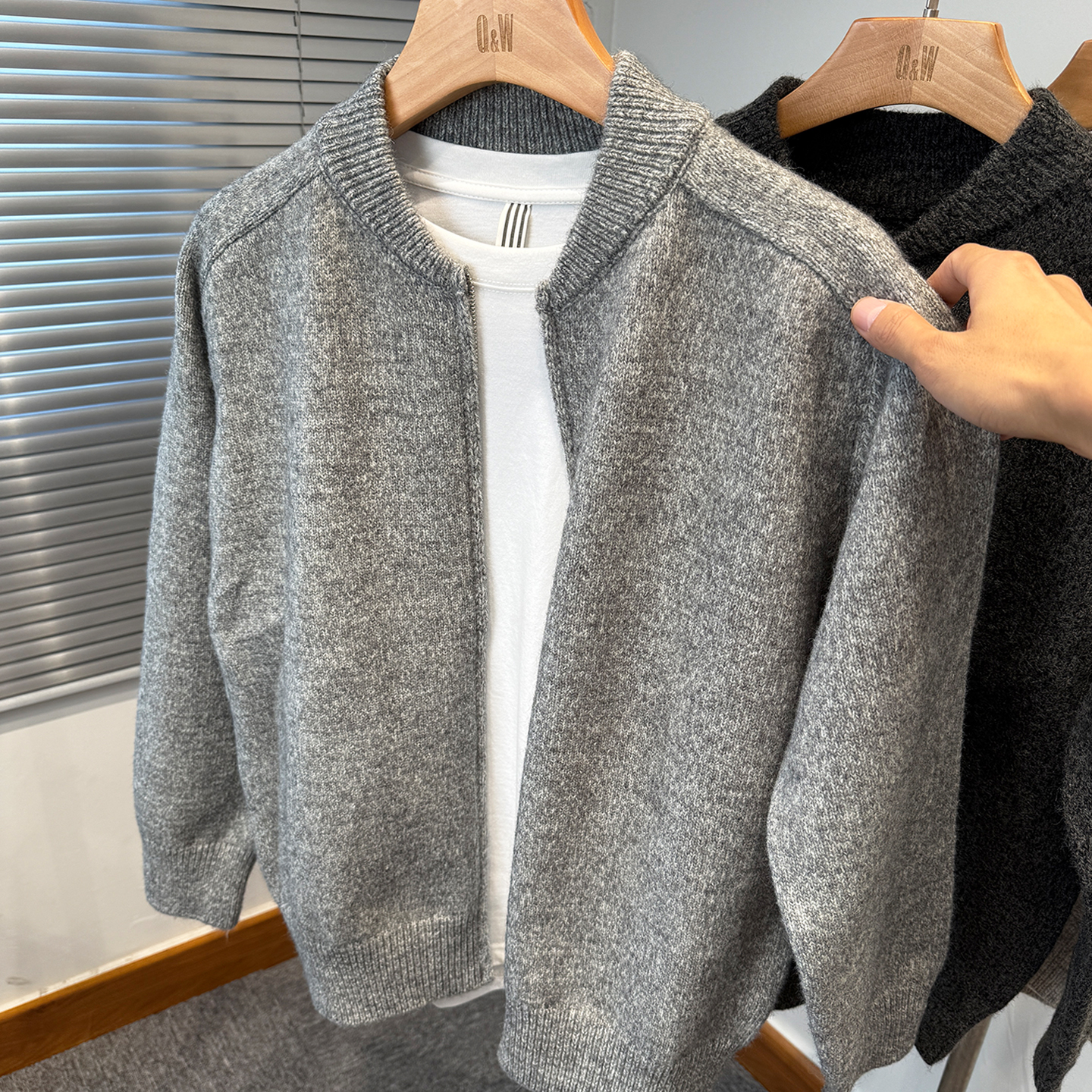 休闲复古感翻领针织衫 热风女士针织衫 新款 毛衣2025年秋季 拉链开衫