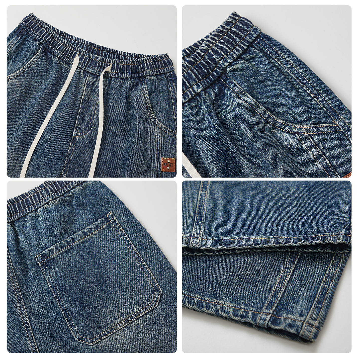 特大码 阔腿宽松休闲长裤 牛仔裤 潮牌痞帅直筒裤 子 男春秋季 摩朝美式