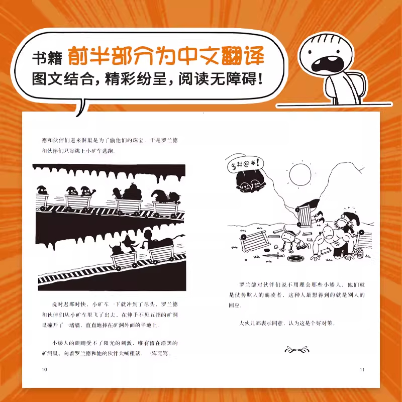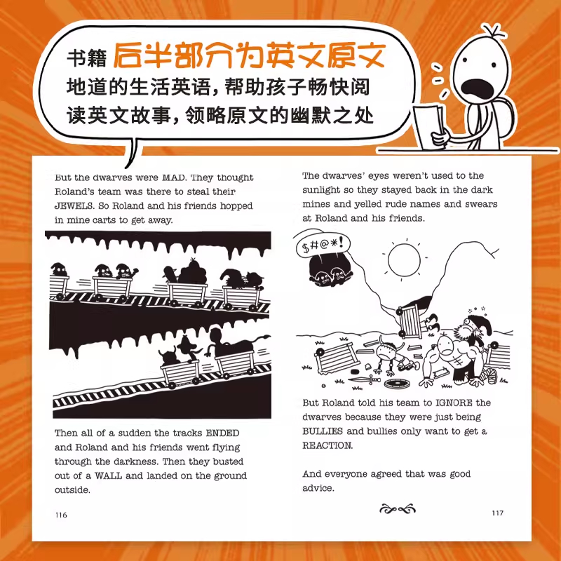 二三四五六年级小学生课外阅读读物英语英文漫画书 书籍 小屁孩罗利历险记上下全套2册 校园幽默爆笑故事书小屁孩日记中英双语原版