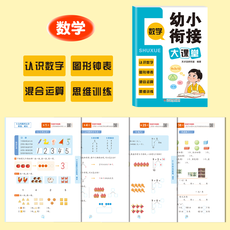 新款 幼小衔接大课堂45天打卡紧扣新课标涵盖语文数学英语知识盘点教材学汉语拼音声母韵母整体认读音节幼儿园大班书籍拼音拼读训练