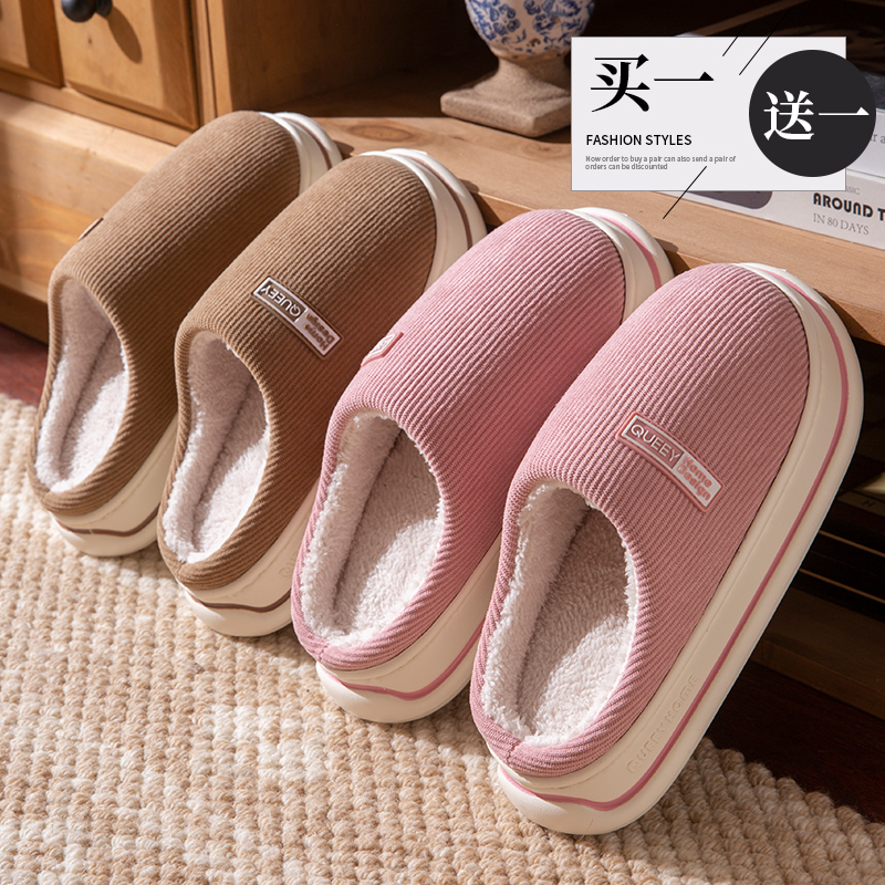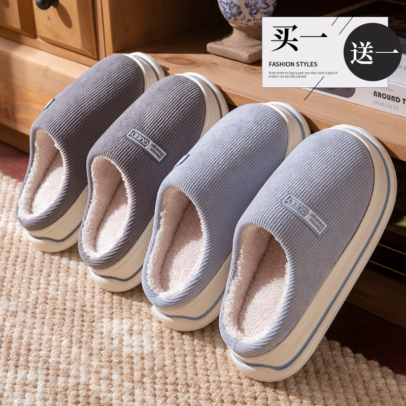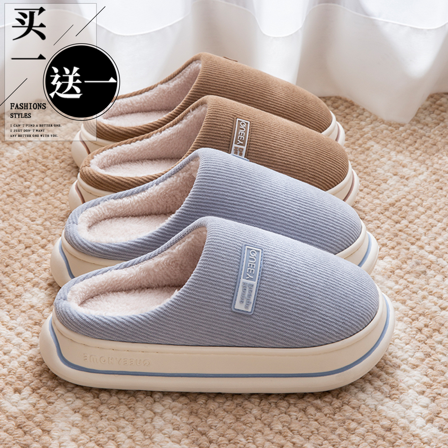室内家居厚底静音毛绒保暖情侣家用拖鞋 新款 女冬季 买一送一棉拖鞋