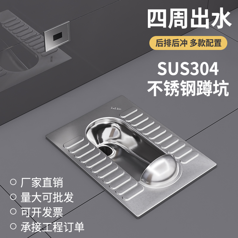 304不锈钢蹲便器厕所卫生间蹲坑式 大便器便盆KTV酒吧工程一体式