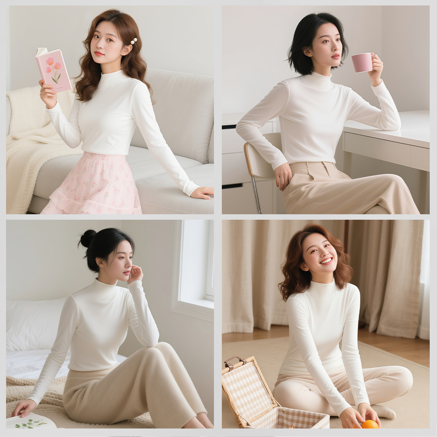 百搭保暖长袖 打底衫 莫代尔棉半高领修身 秋冬季 t恤 女内搭2025新款