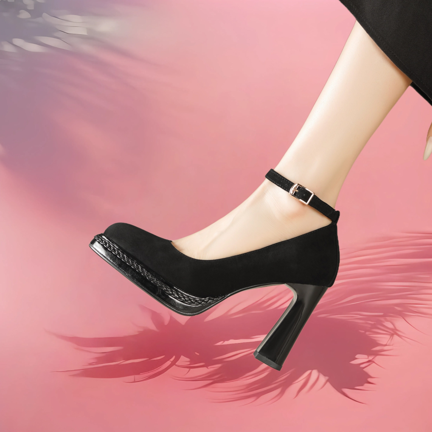 宽楦羊皮尖头细跟通勤浅口单鞋 大码 黑松露 秋冬女鞋 7or9黑色高跟鞋